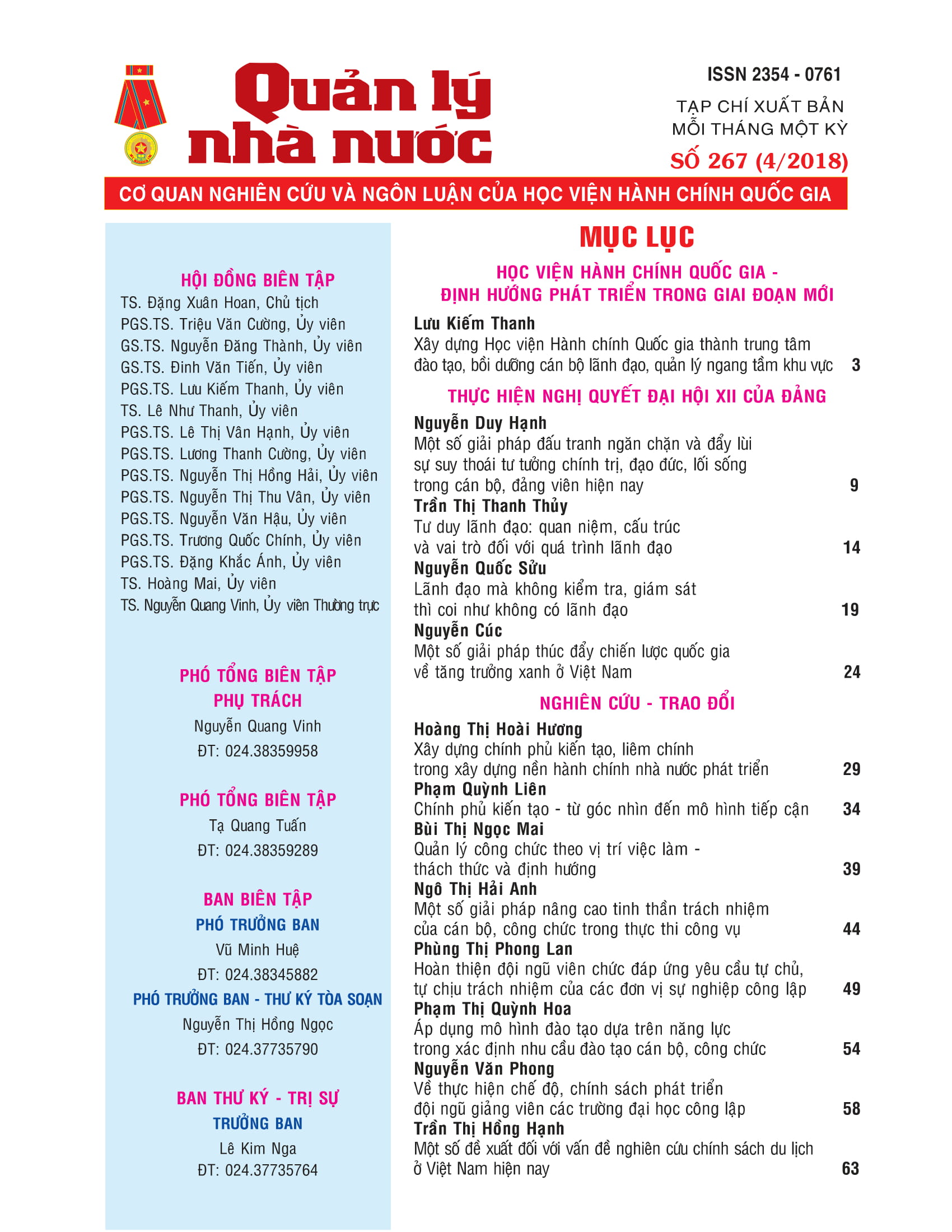 Tạp chí QLNN số 267 (4/2019)