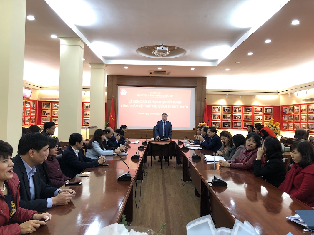Tại buổi lễ, TS. Đặng Xuân Hoan đã trao Quyết định số 5329/QĐ-HCQG ngày 19/12/2019 của Giám đốc Học viện Hành chính Quốc gia về việc bổ nhiệm TS. Nguyễn Quang Vinh – Phó Tổng Biên tập phụ trách, điều hành Tạp chí Quản lý nhà nước giữ chức vụ Tổng biên tập Tạp chí Quản lý nhà nước. Theo Quyết định bổ nhiệm, TS. Nguyễn Quang Vinh giữ chức vụ Tổng Biên tập với thời hạn nhiệm kỳ 5 năm, hưởng phụ cấp chức vụ hệ số 1,0.