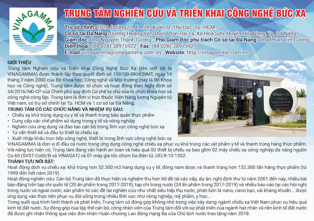 Trung tâm nghiên cứu và triển khai công nghệ bức xạ 06/11/2020 FacebookEmailIn Trung tâm nghiên cứu và triển khai công nghệ bức xạ