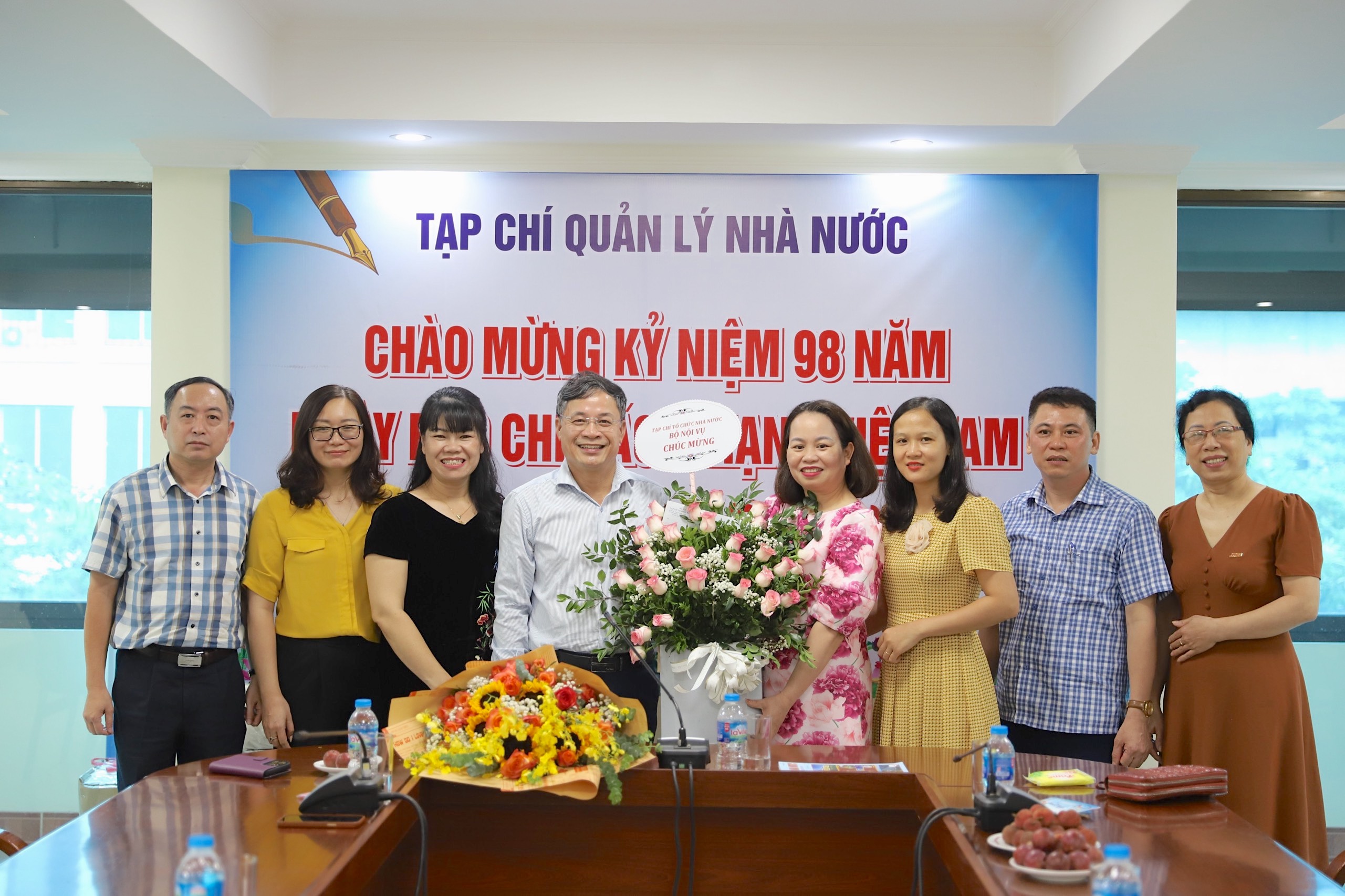 Trong không khí kỷ niệm 98 năm Ngày Báo chí cách mạng Việt Nam, cán bộ, biên tập viên, phóng viên Tạp chí Quản lý nhà nước rất vinh dự và vui mừng được đón tiếp, nhận hoa chúc mừng của PGS.TS. Triệu Văn Cường, Thứ trưởng Bộ Nội vụ; các đồng chí lãnh đạo Học viện Hành chính Quốc gia: PGS.TS. Nguyễn Bá Chiến, Giám đốc Học viện; các Phó Giám đốc Học viện: PGS.TS. Nguyễn Quốc Sửu, PGS.TS Lương Thanh Cường, TS. Lại Đức Vượng; đại diện Lãnh đạo các khoa, ban, đơn vị thuộc và trực thuộc Học viện; Lãnh đạo UBND các tỉnh, thành phố và các sở, ban, ngành của TP. Hồ Chí Minh, Thừa Thiên Huế, Đắk Lắk (địa phương có Văn phòng đại diện của Tạp chí Quản lý nhà nước); các cơ sở đào tạo, viện nghiên cứu, các cơ quan báo chí; các doanh nghiệp, cộng tác viên; các nhà khoa học, giảng viên trong và ngoài Học viện đã đến chung vui, gửi hoa, quà chúc mừng, động viên cán bộ, biên tập viên, phóng viên với nhiều tình cảm quan tâm, thân thiết.