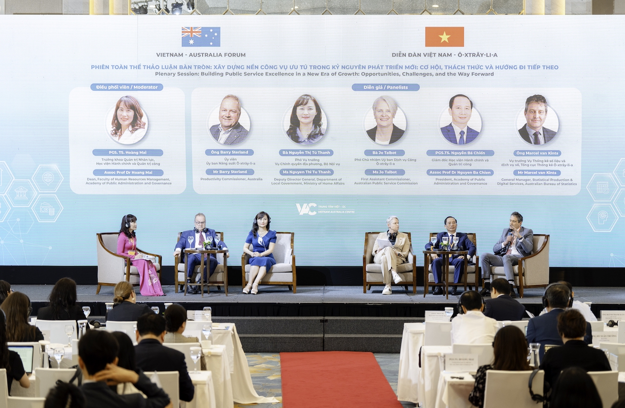 Ba lãnh đạo hàng đầu trong khu vực công của Ô-xtrây-li-a đã mang đến Diễn đàn nhiều ý tưởng mới, táo bạo và những chiến lược có tính thực tiễn nhằm xây dựng một nền quản trị thông minh và linh hoạt hơn. Ông Barry Sterland, Ủy viên Ủy ban Năng suất, Bà Jo Talbot, Phó Chủ nhiệm Ủy ban Dịch vụ công Ô-xtrây-li-a và Ông Marcel Van Kints, Cục trưởng Cục Thống kê Ô-xtrây-li-a đã dẫn dắt các phiên thảo luận sôi nổi về đổi mới số, hoạch định chính sách dựa trên dữ liệu và nâng cao năng lực thể chế, làm nổi bật cách Việt Nam và Ô-xtrây-li-a đang cùng nhau giải quyết những thách thức chung và xây dựng các thể chế công sẵn sàng cho tương lai.