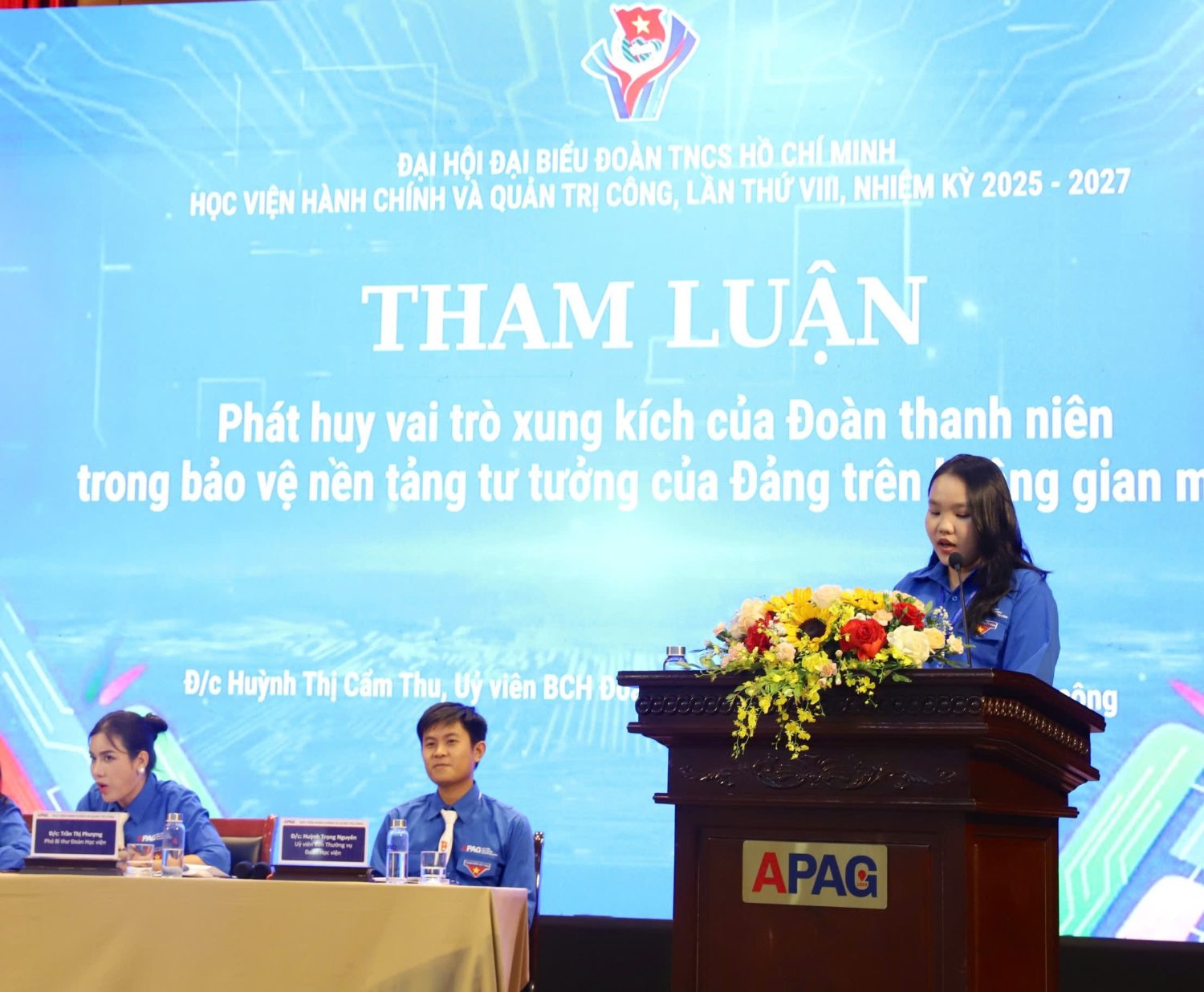 Đoàn Thanh niên Học viện Hành chính và Quản trị công xác định phương châm hành động “Tiên phong – Bản lĩnh – Đoàn kết – Sáng tạo – Phát triển”, tập trung xây dựng tổ chức Đoàn vững mạnh, bồi dưỡng lớp sinh viên “vừa hồng, vừa chuyên”, có tri thức số và năng lực hội nhập. Trọng tâm là đổi mới công tác giáo dục chính trị, đạo đức, pháp luật và truyền thống; đẩy mạnh “5 tiên phong” về khoa học – công nghệ và chuyển đổi số, làm giàu chính đáng và khởi nghiệp, hội nhập quốc tế, tình nguyện vì cộng đồng, tham gia bảo vệ Tổ quốc và an ninh mạng. Cùng với đó, đặt các mục tiêu cụ thể nhằm gắn hoạt động Đoàn với thế mạnh đào tạo, nghiên cứu của Học viện, huy động nguồn lực xã hội, tạo môi trường rèn luyện toàn diện cho tuổi trẻ, góp phần hoàn thành nhiệm vụ chính trị trong giai đoạn mới.