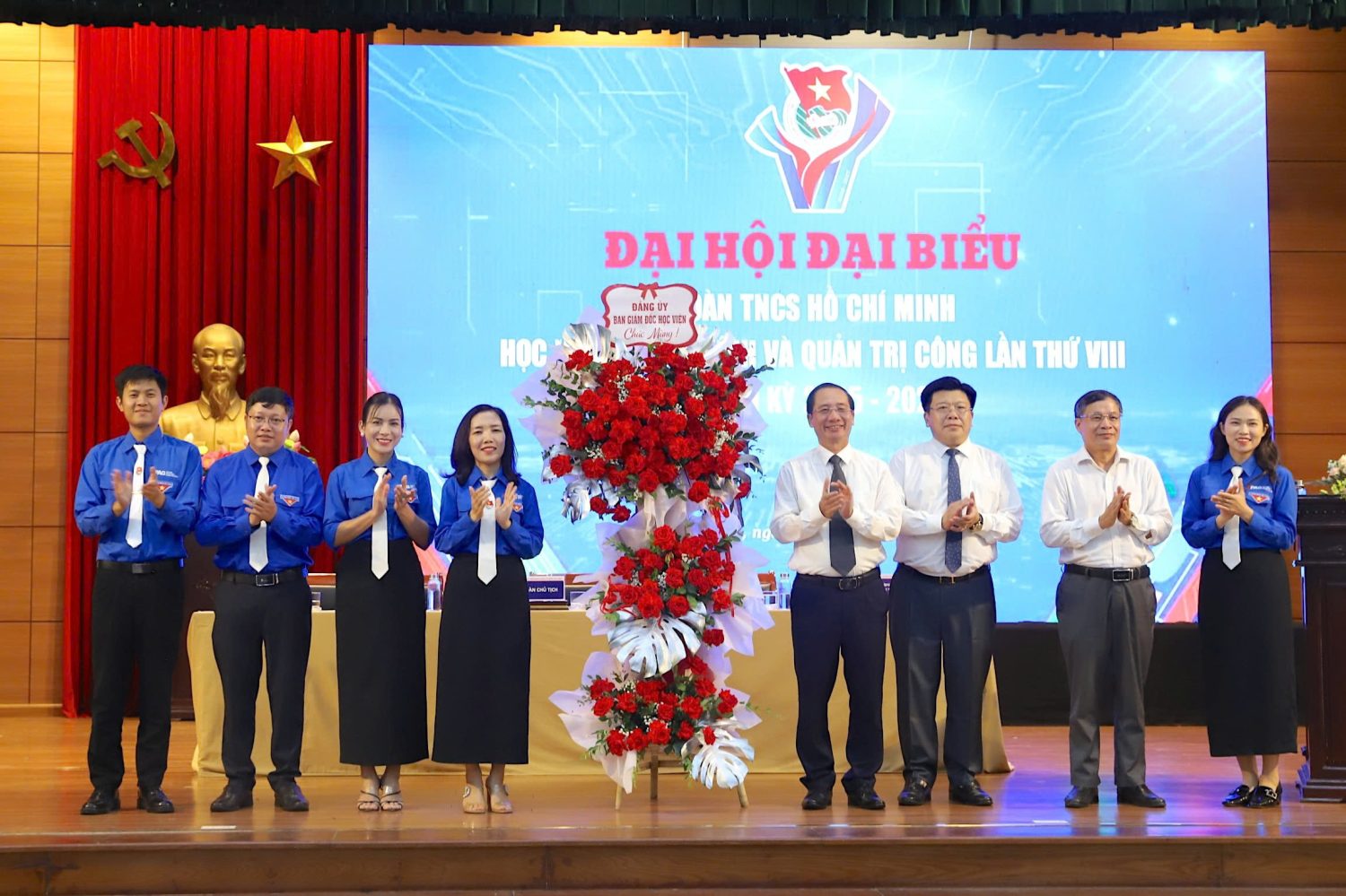 Phát biểu tại Đại hội, TS. Hoàng Ngọc Hải, Ủy viên Ban Thường vụ Đảng ủy, Phó Giám đốc Học viện Hành chính và Quản trị công chúc mừng và biểu dương những thành tích nổi bật mà Đoàn Thanh niên Học viện đã đạt được trong nhiệm kỳ VII. Đồng chí khẳng định, nhiệm kỳ vừa qua là một nhiệm kỳ rất thành công trên các mặt hoạt động, nổi bật với những chương trình hành động đồng hành, thiện nguyện, phát huy vai trò của thanh niên trong các hoạt động xã hội; thể hiện sự nhạy bén, tính hệ thống, đoàn kết, kỷ luật, kỷ cương trong thực hiện nhiệm vụ. Đồng chí đề nghị trong thời gian tới, Đoàn Thanh niên Học viện cần cụ thể hóa các chỉ đạo của Đảng ủy, Ban Giám đốc Học viện thành kế hoạch hành động thiết thực để triển khai Nghị quyết Đại hội; tiếp tục đổi mới nội dung, phương thức hoạt động, tạo sức hút đối với đoàn viên, thanh niên; chủ động đóng góp hơn nữa trong công tác tham mưu, gắn kết hoạt động thanh niên với nhiệm vụ chính trị của Học viện. TS. Hoàng Ngọc Hải nhấn mạnh Đoàn Thanh niên phải thể hiện rõ tính xung kích trong bảo vệ nền tảng tư tưởng của Đảng; xây dựng sự kết nối hệ thống, đồng bộ giữa các cơ sở đoàn, phát huy vai trò xứng đáng là lực lượng dự bị tin cậy của Đảng; đồng thời, bày tỏ kỳ vọng mỗi đoàn viên, thanh niên Học viện sẽ tiếp tục rèn luyện bản lĩnh, phát huy tinh thần sáng tạo, tin tưởng vào năng lực và tiềm năng phát triển, đưa phong trào Đoàn ngày càng lớn mạnh, khẳng định vị thế, uy tín của tuổi trẻ Học viện trong giai đoạn mới.
