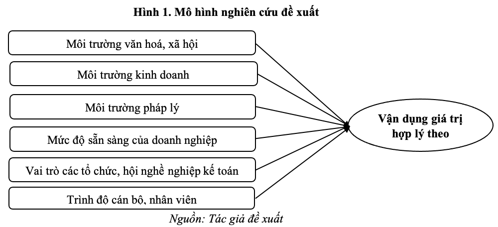 Qua tổng quan các nghiên cứu trong và ngoài nước liên quan đến việc vận dụng giá trị hợp lý theo chuẩn mực quốc tế, tác giả lựa chọn và đề xuất các giả thuyết và mô hình nghiên cứu các nhân tố thúc đẩy việc vận dụng giá trị hợp lý theo chuẩn mực kế toán quốc tế trong các tập đoàn kinh tế tư nhân tại Việt Nam như sau: