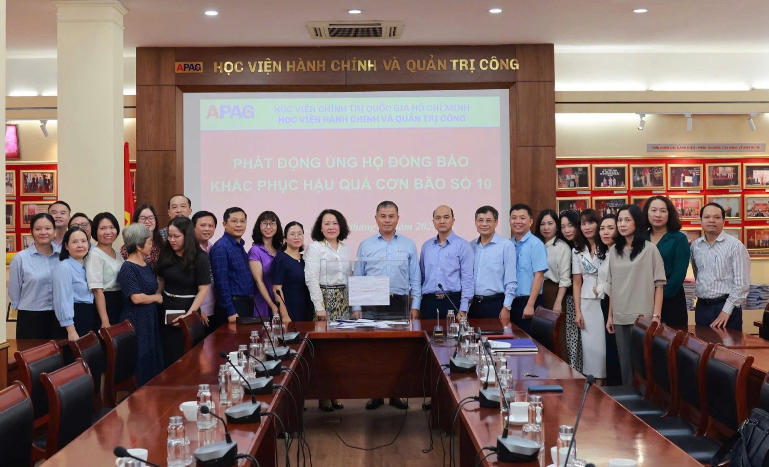 Sau lời kêu gọi của Phó Giám đốc Học viện, các đồng chí tham dự lễ phát động đã ủng hộ bằng tiền mặt đồng bào bị thiên tai. Trước đó, viên chức, giảng viên, người lao động trong toàn hệ thống Học viện Hành chính và Quản trị công đã ủng hộ 1 ngày lương với tổng số hơn 300 triệu đồng giúp đỡ đồng bào các địa phương bị thiệt hại do cơn bão số 10.
