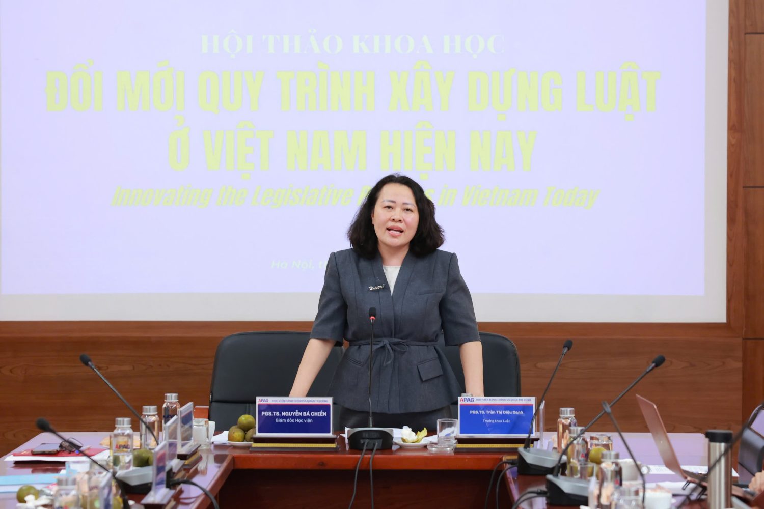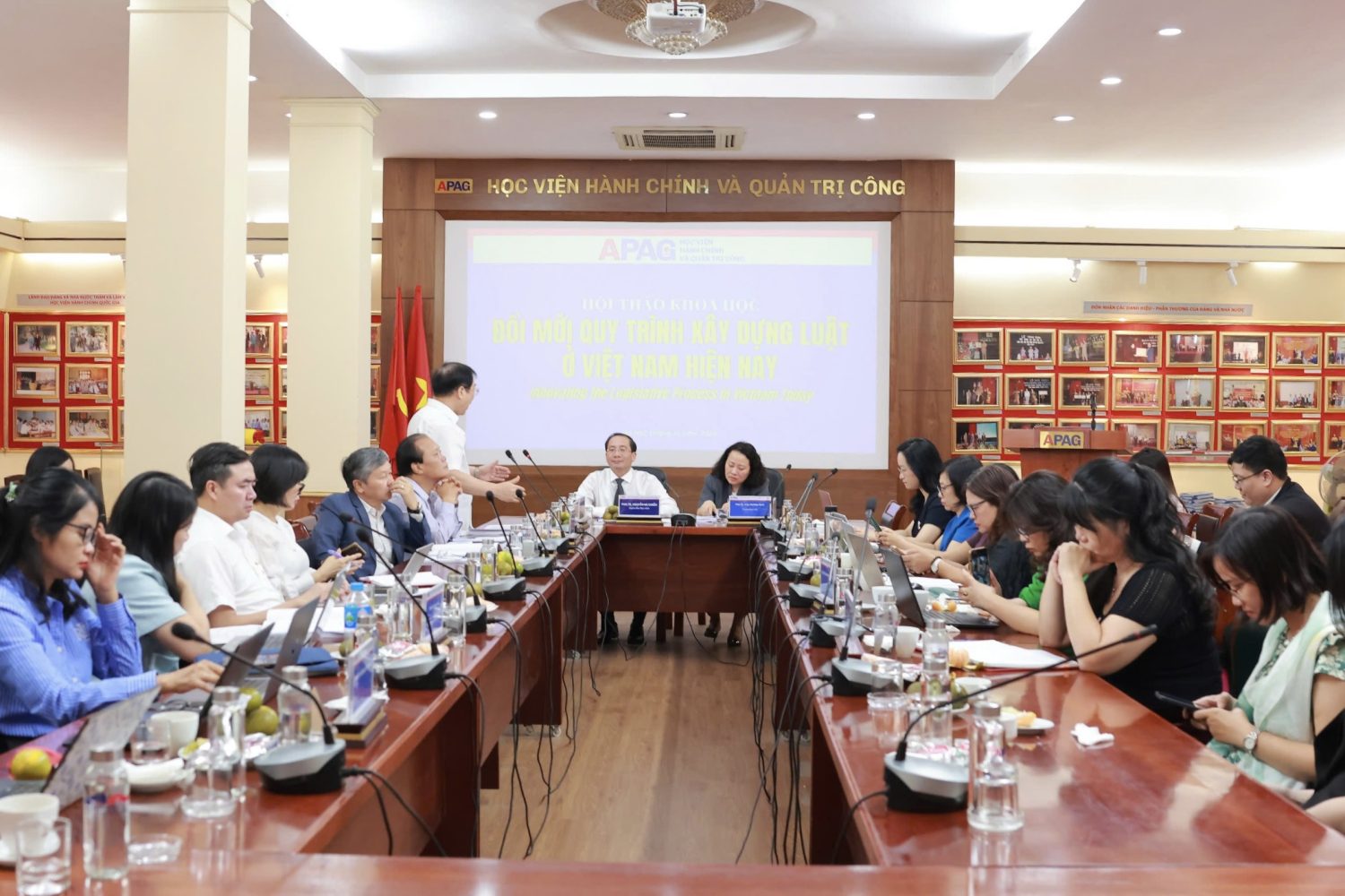 (Quanlynhanuoc.vn) – Chiều ngày 22/10/2025, Học viện Hành chính và Quản trị công tổ chức Hội thảo khoa học với chủ đề “Đổi mới quy trình xây dựng luật ở Việt Nam hiện nay”. PGS.TS. Nguyễn Bá Chiến, Giám đốc Học viện và PGS.TS. Trần Thị Diệu Oanh, Trưởng khoa Luật đồng chủ trì Hội thảo. Hội thảo được tổ chức theo hình thức trực tiếp kết hợp trực tuyến tới các điểm cầu của các Phân hiệu của Học viện.