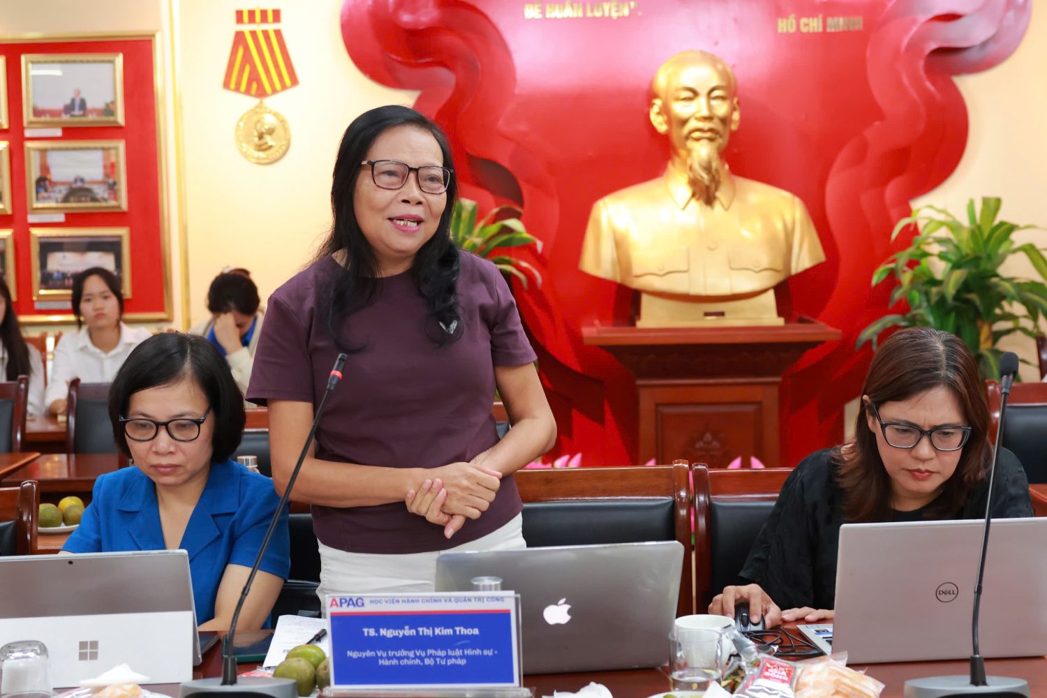 Chia sẻ tại Hội thảo, TS. Nguyễn Thị Kim Thoa nhấn mạnh vai trò của pháp luật trong việc bảo vệ người thực thi công vụ, dám nghĩ, dám làm vì lợi ích công; chỉ ra sự cần thiết của việc sửa đổi, bổ sung luật để phù hợp với thực tiễn, đặc biệt khi có vướng mắc giữa các quy định pháp luật và Hiến pháp. Bà cũng đề xuất nên tham khảo, nghiên cứu kinh nghiệm của Đức về cơ chế lập pháp, bảo đảm dân chủ, pháp quyền mà vẫn mở đường cho sáng tạo và đổi mới. Đây là nền tảng cho một Nhà nước pháp quyền hiệu quả, hiện đại và gần dân.