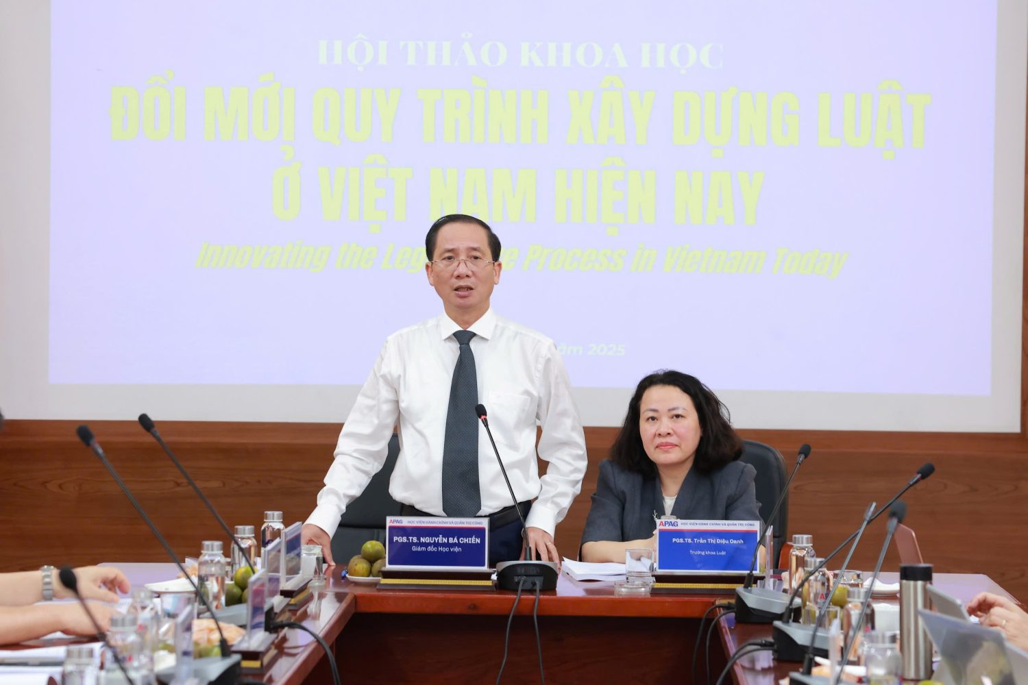 Phát biểu đề dẫn và khai mạc Hội thảo, PGS.TS. Nguyễn Bá Chiến nhấn mạnh, xây dựng pháp luật là công việc trọng yếu, thể hiện quyền lập pháp của Quốc hội và là phương thức chủ yếu để thể chế hóa đường lối, chủ trương của Đảng. Bối cảnh mới của đất nước đặt ra yêu cầu cấp thiết phải đổi mới mạnh mẽ hơn nữa công tác này.