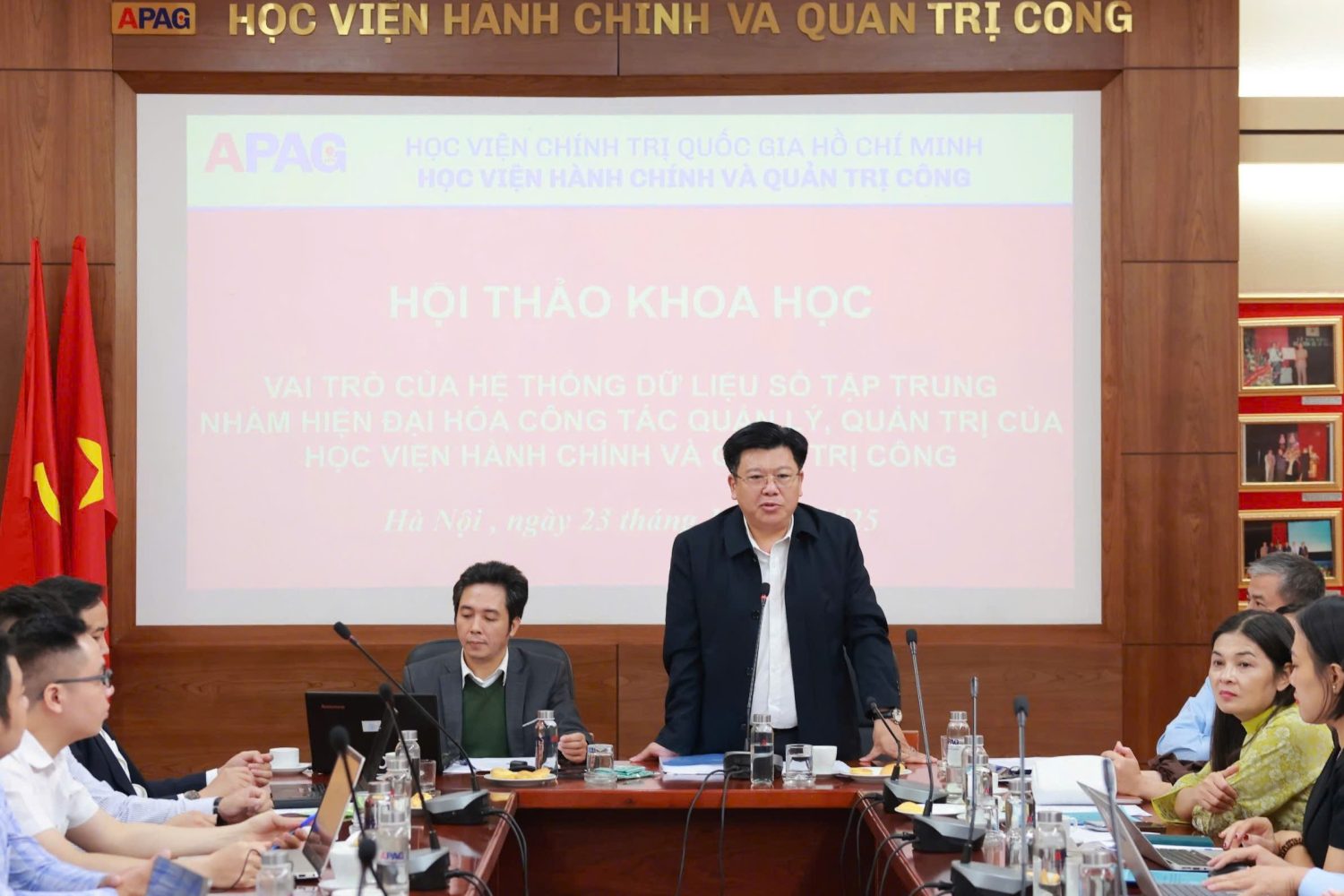 Phát biểu khai mạc Hội thảo, TS. Hoàng Ngọc Hải, Phó Giám đốc Học viện khẳng định, trong bối cảnh đất nước đang bước vào kỷ nguyên mới – kỷ nguyên số, kỷ nguyên của chính phủ số, kinh tế số và xã hội số đặt ra yêu cầu tất yếu đối với Học viện Hành chính và Quản trị công cần hình thành hệ thống dữ liệu số tập trung. Bởi chuyển đổi số không chỉ là việc ứng dụng công nghệ mà là quá trình thay đổi căn bản mô hình quản lý, phương thức hoạt động và văn hóa làm việc. Trong tiến trình này, dữ liệu số được xem là tài sản chiến lược, là nguồn lực cốt lõi để thúc đẩy sự đổi mới.