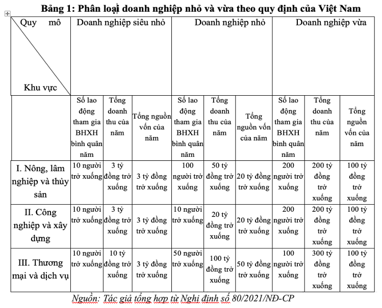 Luật Hỗ trợ doanh nghiệp nhỏ và vừa được ban hành và có hiệu lực từ ngày 01/01/2018. Theo Luật Hỗ trợ doanh nghiệp nhỏ và vừa và Nghị định số 80/2021/NĐ-CP của Chính phủ hướng dẫn thi hành Luật, xác định doanh nghiệp nhỏ, doanh nghiệp vừa theo các nguyên tắc chung sau: doanh nghiệp nhỏ và vừa, bao gồm doanh nghiệp siêu nhỏ, doanh nghiệp nhỏ và doanh nghiệp vừa, có số lao động tham gia bảo hiểm xã hội bình quân năm không quá 200 người và đáp ứng một trong hai tiêu chí: (1) Tổng nguồn vốn không quá 100 tỷ đồng; (2) Tổng doanh thu của năm trước liền kề không quá 300 tỷ đồng. Theo đó, các doanh nghiệp nhỏ và vừa sẽ được phân loại dựa trên các tiêu chí về quy mô vốn, số lượng lao động và khu vực, như sau: