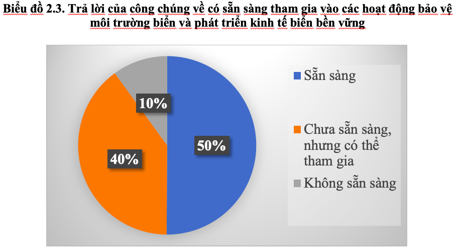 Các chiến dịch tuyên truyền không chỉ dừng lại ở việc nâng cao nhận thức mà còn khuyến khích người dân, doanh nghiệp và các tổ chức xã hội tích cực tham gia vào các hoạt động bảo vệ tài nguyên biển. Khảo sát công chúng cho thấy, có 10% chưa sẵn sàng tham gia vào các hoạt động bảo vệ môi trường biển và phát triển kinh tế biển bền vững.