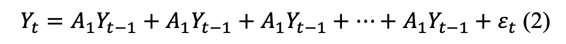 Trong đó IND là chỉ số sản xuất công nghiệp Việt Nam, OIL là giá dầu Brent thế giới, EX là tỷ giá VND/USD, INF là tỷ lệ lạm phát và IIPW là chỉ số sản xuất công nghiệp toàn cầu; Yt là vector bao gồm các biến lnINDt, lnOILt, lnEXt, lnINFt, lnIIPWt; các ma trận Ai mô tả mức độ tác động qua lại giữa các biến theo thời gian.