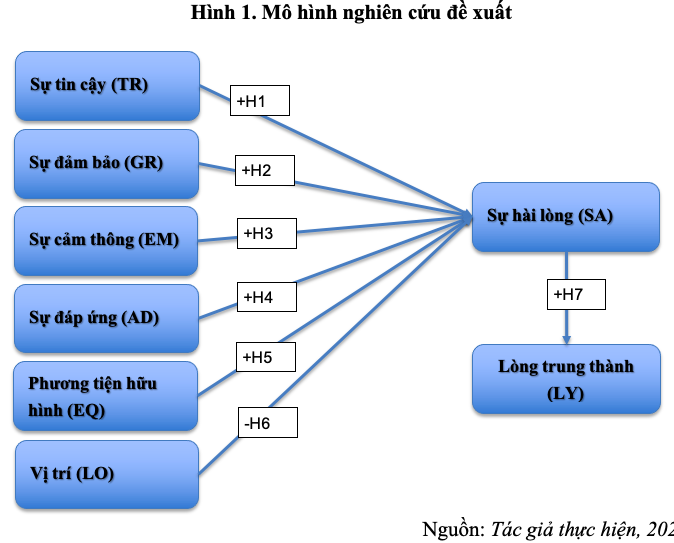 Vị trí của bệnh viện (khoảng cách từ nơi bệnh nhân cư trú đến bệnh viện) ảnh hưởng đến tiện lợi trong tiếp cận dịch vụ là một yếu tố quan trọng trong đánh giá trải nghiệm tổng thể. Nghiên cứu thực nghiệm ở các cơ sở y tế cho thấy vị trí bệnh viện càng cách xa nơi bệnh nhân cư trú thì càng giảm sự hài lòng do giảm rào cản tiếp cận và chi phí thời gian cho bệnh nhân9. Trong bối cảnh đô thị như TP. Hồ Chí Minh, yếu tố vị trí càng trở nên quan trọng khi người bệnh có nhiều lựa chọn thay thế; vì vậy, H6 hợp lý khi áp dụng vào mô hình nghiên cứu.