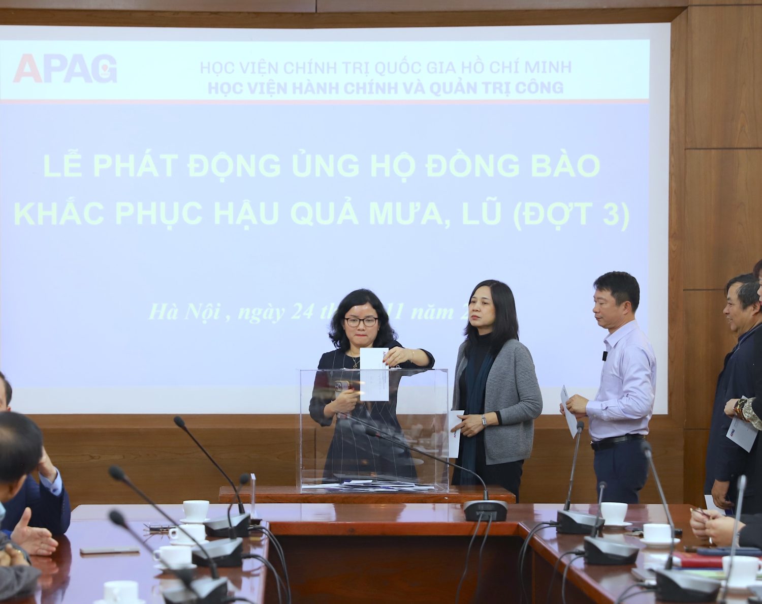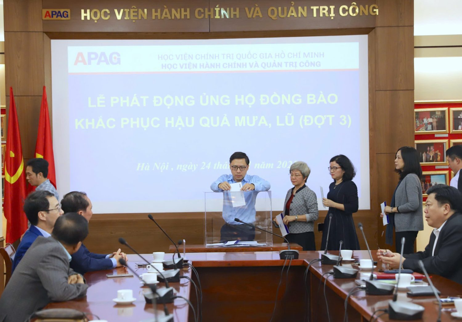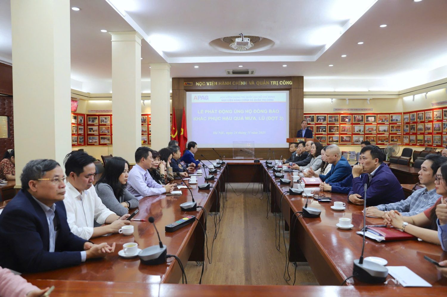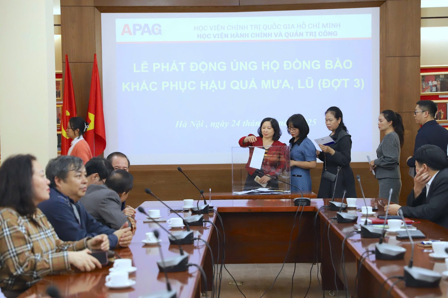 Trước tình hình đó, hưởng ứng lời kêu gọi của Học viện Chính trị quốc gia Hồ Chí Minh và thực hiện Thông báo số 2628-TB/HVHC&QTC về việc phát động ủng hộ đồng bào bị thiệt hại do mưa, lũ (đợt 3), Đảng ủy và Ban Giám đốc Học viện kêu gọi toàn thể viên chức, người lao động, học viên và sinh viên bằng tấm lòng, tình cảm tiếp tục chung tay góp sức, thể hiện tinh thần trách nhiệm xã hội và sự sẻ chia sâu sắc hướng về đồng bào vùng lũ lụt. Mỗi cá nhân phát huy truyền thống nhân ái, cùng chung tay hỗ trợ để đồng bào vùng thiên tai có thêm nguồn lực vượt qua thời điểm khó khăn, khắc phục hậu quả, sớm ổn định đời sống, tái thiết sản xuất và trở lại cuộc sống bình thường.
