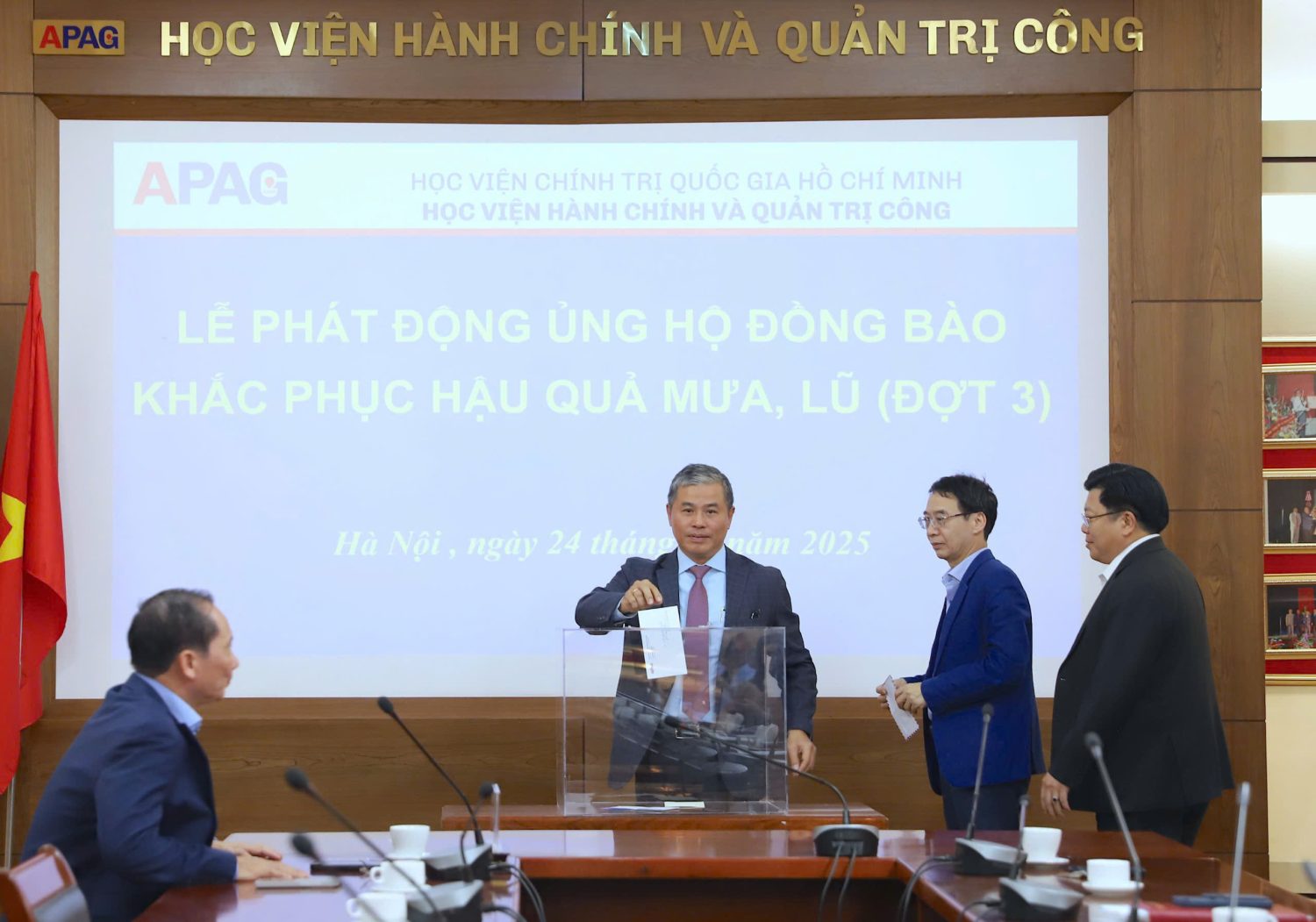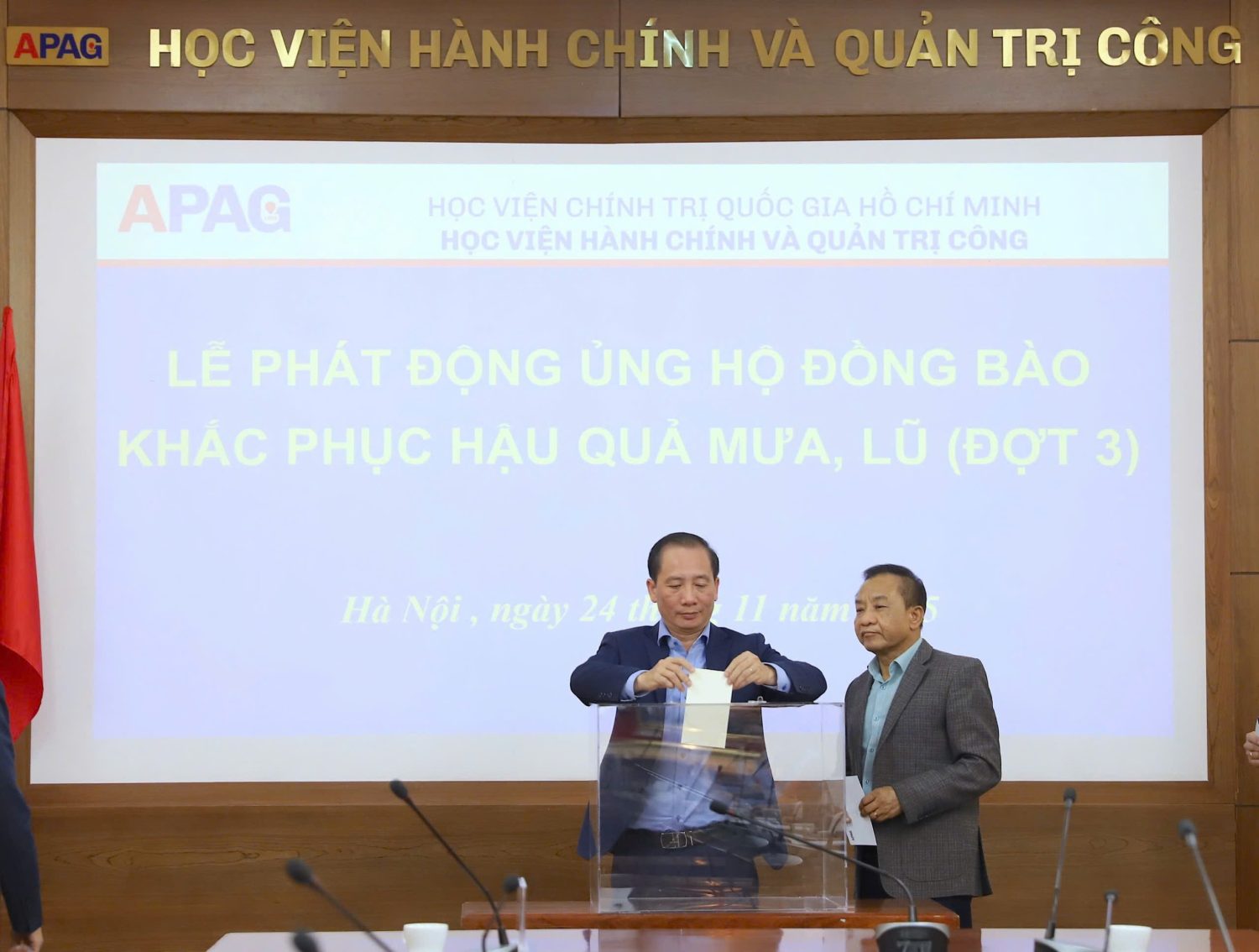 (Quanlynhanuoc.vn) – Với truyền thống “thương người như thể thương thân”, “tương thân tương ái” trong những lúc gian khó luôn là giá trị nhân văn sâu sắc, quý báu của dân tộc Việt Nam, chiều ngày 24/11/2025, Học viện Hành chính và Quản trị công tổ chức Lễ phát động đợt 3 ủng hộ đồng bào các tỉnh miền Trung và Tây Nguyên bị thiệt hại do mưa, bão, lũ.