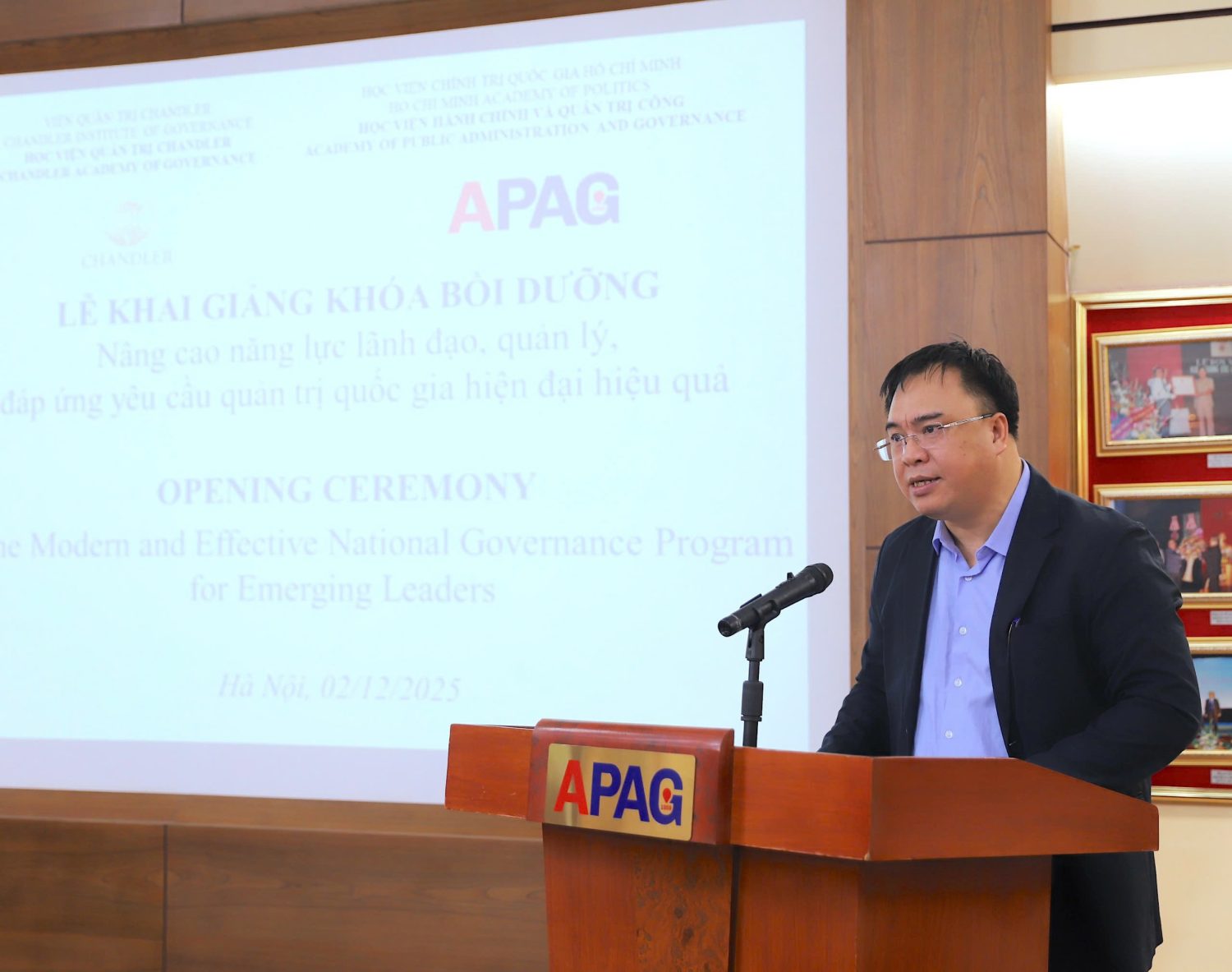 (Quanlynhanuoc.vn) – Sáng ngày 02/12/2025, tại Hà Nội, Học viện Hành chính và Quản trị công phối hợp với Viện Quản trị Chandler, Singapore tổ chức Lễ khai giảng khóa bồi dưỡng “Nâng cao năng lực lãnh đạo, quản lý, đáp ứng yêu cầu quản trị quốc gia hiện đại, hiệu quả”.