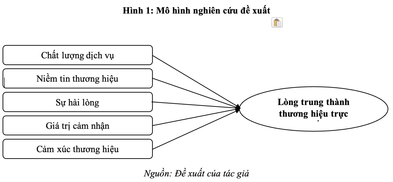 Các yếu tố độc lập bao gồm (Xi): chất lượng dịch vụ (CL); niềm tin thương hiệu (NT); sự hài lòng (HL); giá trị cảm nhận (GT); cảm xúc thương hiệu (CX)