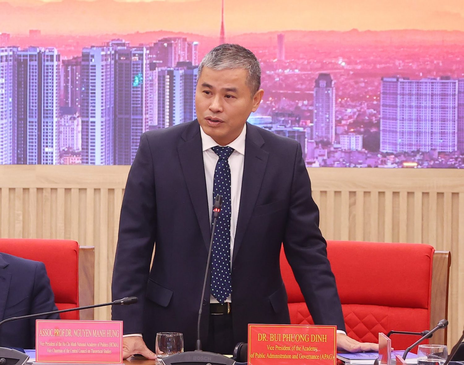 Phát biểu khai mạc Tọa đàm, PGS.TS. Nguyễn Mạnh Hùng, Phó Giám đốc Học viện Chính trị quốc gia Hồ Chí Minh, Phó Chủ tịch Hội đồng Lý luận Trung ương khẳng định, Đảng và Nhà nước Việt Nam nhất quán xác định việc nâng cao hiệu lực, hiệu quả hoạt động của Chính phủ là điều kiện cốt lõi để phát triển đất nước nhanh và bền vững. Các nghị quyết gần đây của Bộ Chính trị đều nhấn mạnh yêu cầu xây dựng bộ máy tinh gọn, hiệu lực, hiệu quả, tăng cường kỷ luật, kỷ cương hành chính, nâng cao năng lực thực thi và phối hợp chính sách, đồng thời thúc đẩy đổi mới sáng tạo trong quản lý công.