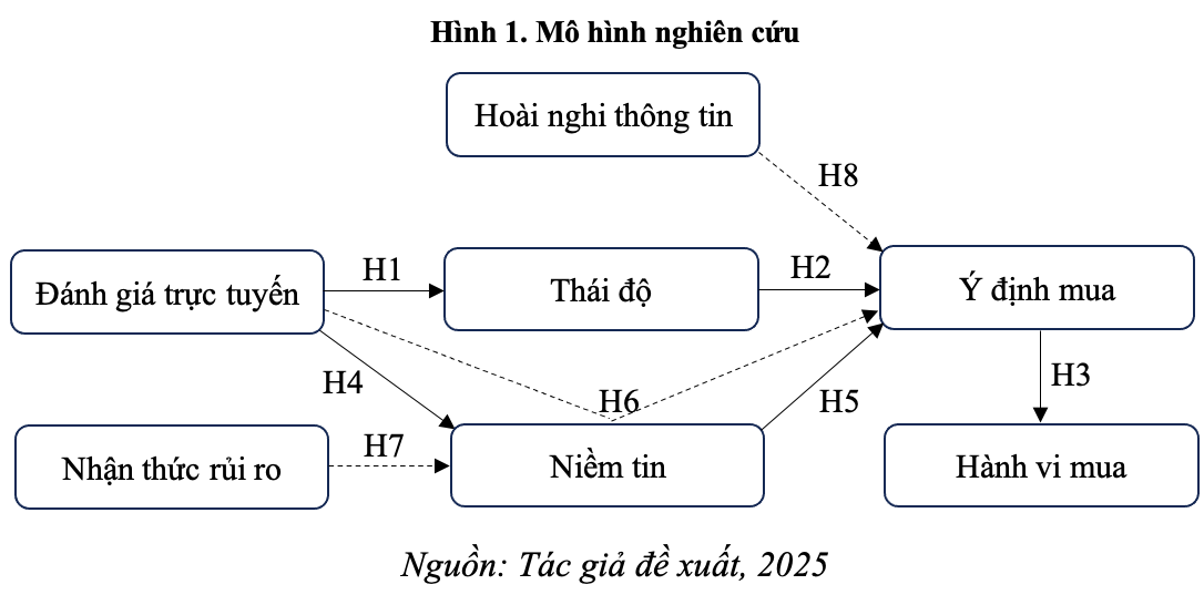 Nghiên cứu sử dụng phương pháp định lượng, thu thập dữ liệu bằng bảng khảo sát trực tuyến với thang đo Likert 5 mức độ (1 – 5). Bảng hỏi gồm 3 phần: thông tin nhân khẩu học, hành vi mua sắm trực tuyến và các thang đo cho các biến đánh giá trực tuyến như: thái độ, niềm tin, ý định mua, hành vi mua, nhận thức rủi ro và hoài nghi thông tin. Mẫu khảo sát được chọn theo phương pháp thuận tiện từ người tiêu dùng trẻ thường xuyên mua sắm trên các nền tảng thương mại điện tử tại Việt Nam. Tổng cộng 316 mẫu hợp lệ được thu thập qua Google Forms.