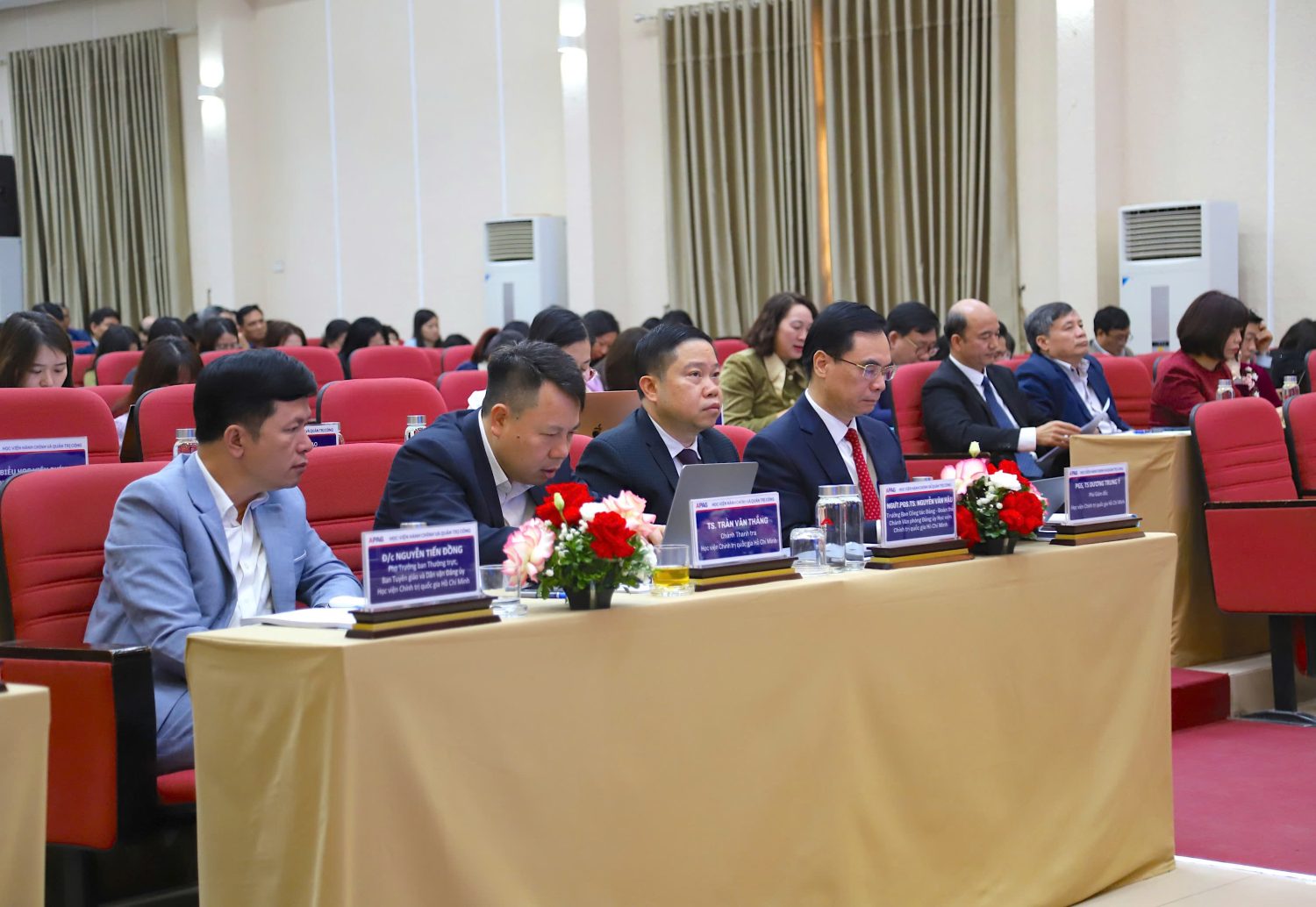 Đoàn Chủ tịch điều hành Hội nghị: PGS.TS. Nguyễn Bá Chiến, Bí thư Đảng ủy, Giám đốc Học viện; PGS.TS. Lương Thanh Cường, Phó Bí thư Đảng ủy, Phó Giám đốc Học viện; TS. Nguyễn Đăng Quế, Phó Giám đốc Học viện, GS.TS. Nguyễn Quốc Sửu, Phó Giám đốc Học viện; TS. Bùi Phương Đình, Phó Giám đốc Học viện; TS. Hoàng Ngọc Hải, Phó Giám đốc Học viện.