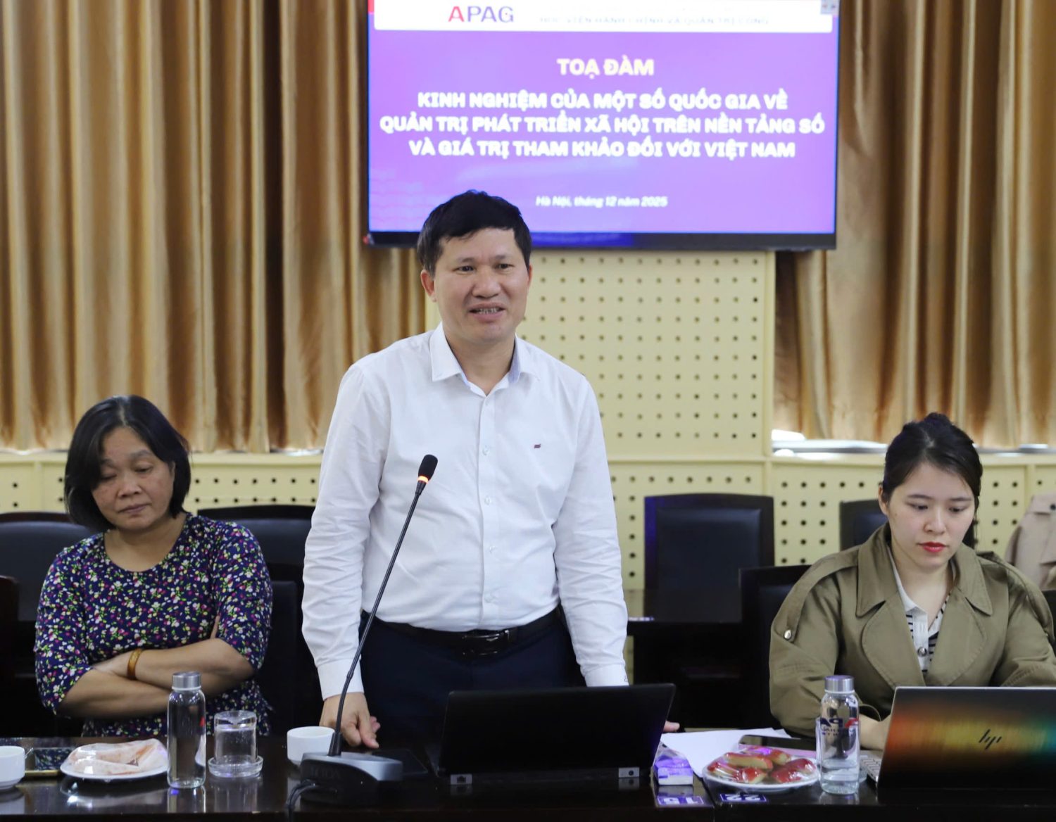(Quanlynhanuoc.vn) – Chiều ngày 23/12/2025, tại Học viện Hành chính và Quản trị công, Ban Chủ nhiệm đề tài khoa học cấp Bộ: “Quản trị phát triển xã hội của Việt Nam trên nền tảng số” đã tổ chức Tọa đàm khoa học với chủ đề: “Kinh nghiệm của một số quốc gia về quản trị phát triển xã hội trên nền tảng số và giá trị tham khảo đối với Việt Nam”. GS.TS. Nguyễn Quốc Sửu, Phó Giám đốc Học viện Hành chính và Quản trị công, Phó Chủ nhiệm đề tài chủ trì Tọa đàm.
