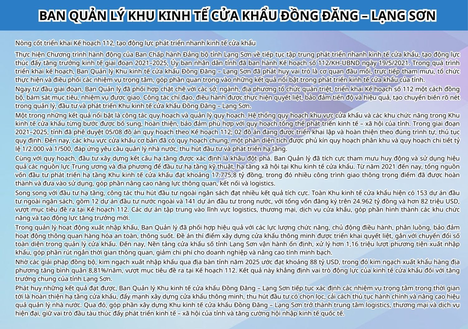 Ban Quản lý Khu kinh tế cửa khẩu Đồng Đăng – Lạng Sơn