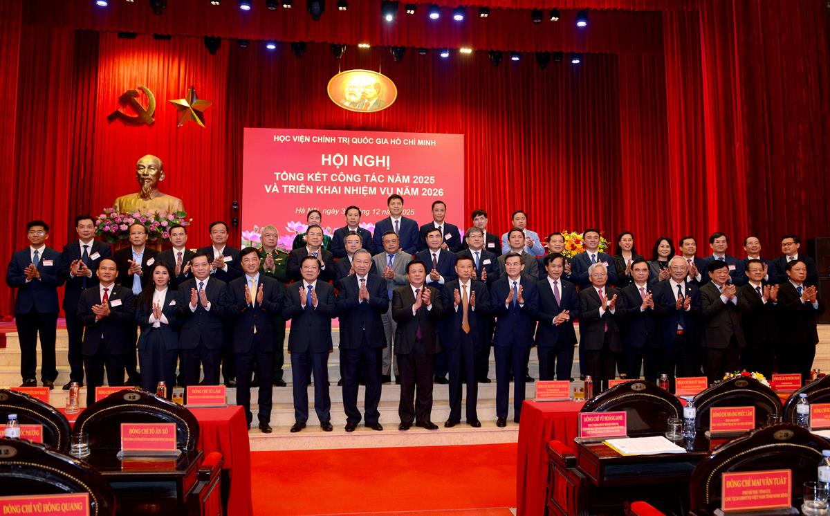 Học viện tiếp tục đổi mới căn bản, toàn diện công tác đào tạo, bồi dưỡng cán bộ; hoàn thiện chương trình, giáo trình, phương thức đào tạo cập nhật tinh thần mới của Nghị quyết Đại hội XIV và các quyết sách chiến lược của Đảng; triển khai đồng bộ các đề án đào tạo, bồi dưỡng cán bộ, tập trung cho đội ngũ cán bộ cấp chiến lược và cán bộ cấp cơ sở; nâng cao chất lượng hệ thống trường chính trị, phấn đấu chuẩn hóa theo quy định, đáp ứng yêu cầu xây dựng đội ngũ cán bộ các cấp. Thúc đẩy mạnh mẽ chuyển đổi số gắn với hiện đại hóa quản trị, từng bước xây dựng Học viện thông minh; đẩy mạnh số hóa công tác chỉ đạo, điều hành, bồi dưỡng, đào tạo và nghiên cứu khoa học; nâng cao hiệu quả thông tin – truyền thông, quản lý dữ liệu và ứng dụng công nghệ, bảo đảm đồng bộ, hiện đại và hiệu quả trong toàn hệ thống. Phát huy, sử dụng hiệu quả các nguồn lực; tích cực, chủ động đẩy mạnh công tác đối ngoại; nâng cao vị thế, uy tín chính trị và học thuật của Học viện. Tăng cường thanh tra, kiểm tra, phòng, chống tham nhũng, lãng phí, quan liêu, tiêu cực. Phát huy ưu thế, hiệu năng, hiệu lực, hiệu quả của tổ chức, bộ máy mới của Học viện.