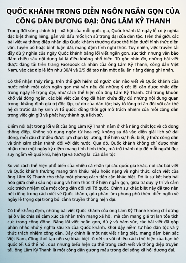 Quốc khánh là ngày lễ có ý nghĩa đặc biệt thiêng liêng của dân tộc