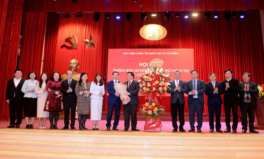 Thay mặt Đảng ủy, Ban Giám đốc, Thường trực Hội đồng Lý luận Trung ương cùng toàn thể viên chức, người lao động trong Học viện, Hội nghị trân trọng chúc mừng đồng chí Đoàn Minh Huấn trên cương vị công tác mới; tin tưởng đồng chí sẽ tiếp tục phát huy trí tuệ, bản lĩnh, tinh thần trách nhiệm, hoàn thành xuất sắc nhiệm vụ mà Đảng, Nhà nước và Nhân dân tin tưởng giao phó. Nhân dịp này, Hội nghị cũng trân trọng chúc mừng GS.TS Nguyễn Xuân Thắng, đồng thời bày tỏ lời cảm ơn sâu sắc và sự tri ân chân thành đối với những đóng góp to lớn, tâm huyết và trách nhiệm của đồng chí trong suốt quá trình lãnh đạo, chỉ đạo, xây dựng và phát triển Học viện.