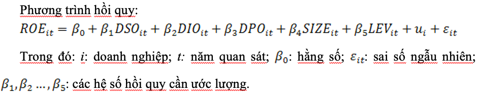 Để tránh hiện tượng triệt tiêu tác động giữa các thành phần khi áp dụng chỉ tiêu tổng hợp (như chu kỳ chuyển đổi tiền mặt), nghiên cứu lựa chọn mô hình cấu phần với các biến giải thích độc lập, gồm: DSO, DIO và DPO; đồng thời, các biến kiểm soát về đặc điểm tài chính và quy mô doanh nghiệp (LEV, SIZE) được đưa vào để tách biệt tác động và nâng cao độ tin cậy của ước lượng.