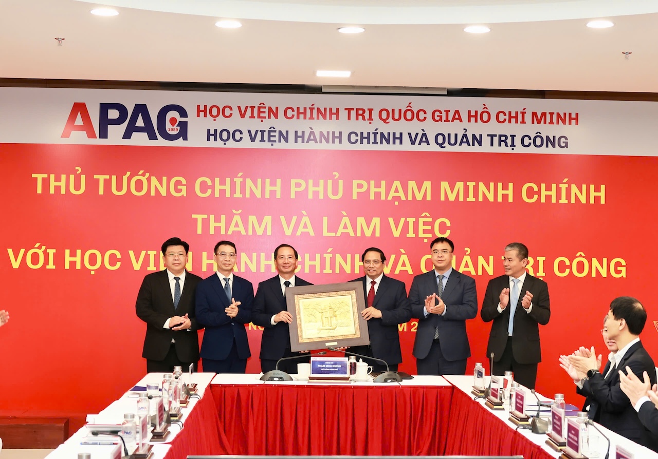 Thủ tướng Chính phủ tặng quà lưu niệm cho Học viện Hành chính và Quản trị công