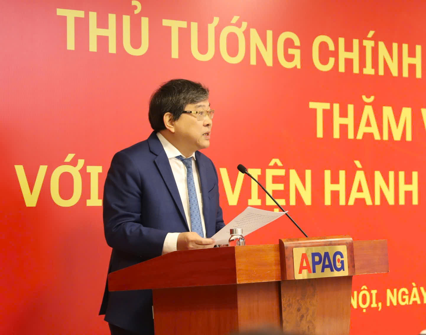 Tại buổi làm việc với Thủ tướng Chính phủ Phạm Minh Chính, PGS.TS. Nguyễn Bá Chiến, Giám đốc Học viện Hành chính và Quản trị công đã báo cáo toàn diện về quá trình kiện toàn tổ chức sau sáp nhập, kết quả hoạt động đào tạo, bồi dưỡng, nghiên cứu khoa học, hợp tác quốc tế và đề xuất các kiến nghị chiến lược nhằm nâng cao năng lực quản trị quốc gia trong bối cảnh mới.