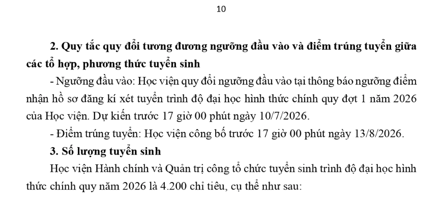 Thông tin tuyển sinh trình độ đại học hình thức chính quy năm 2026 của Học viện Hành chính và Quản trị công