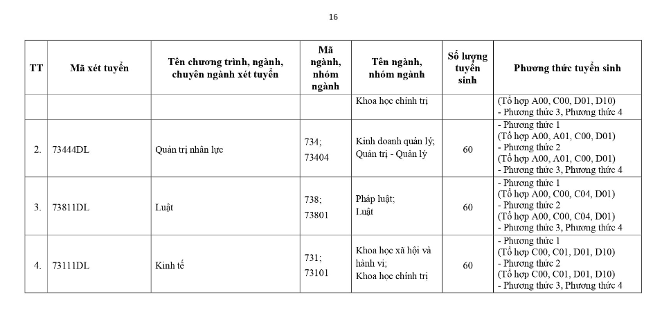 PHƯƠNG THỨC TUYỂN SINH (4 phương thức):
