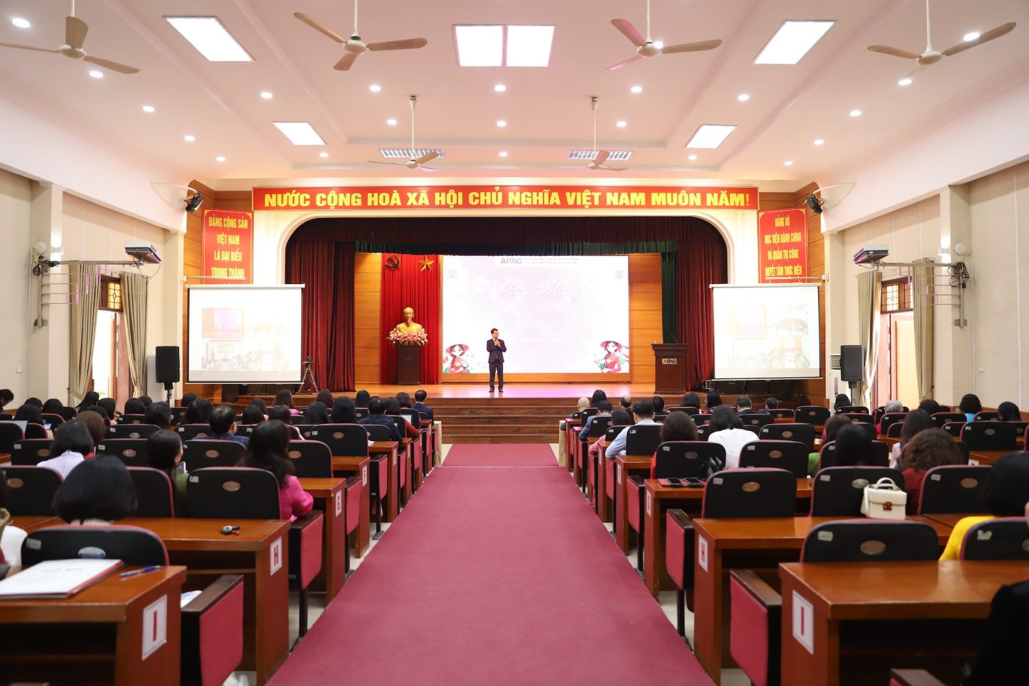 Buổi gặp mặt diễn ra trong không khí trang trọng, ấm áp và thân tình, thể hiện sự quan tâm của Đảng ủy, Ban Giám đốc Học viện đối với đội ngũ nữ giảng viên, viên chức và người lao động. Đây cũng là dịp để các cán bộ, viên chức giao lưu, chia sẻ, tăng cường sự gắn kết, tiếp tục phát huy tinh thần đoàn kết, trách nhiệm và sáng tạo, góp phần xây dựng Học viện Hành chính và Quản trị công ngày càng phát triển.