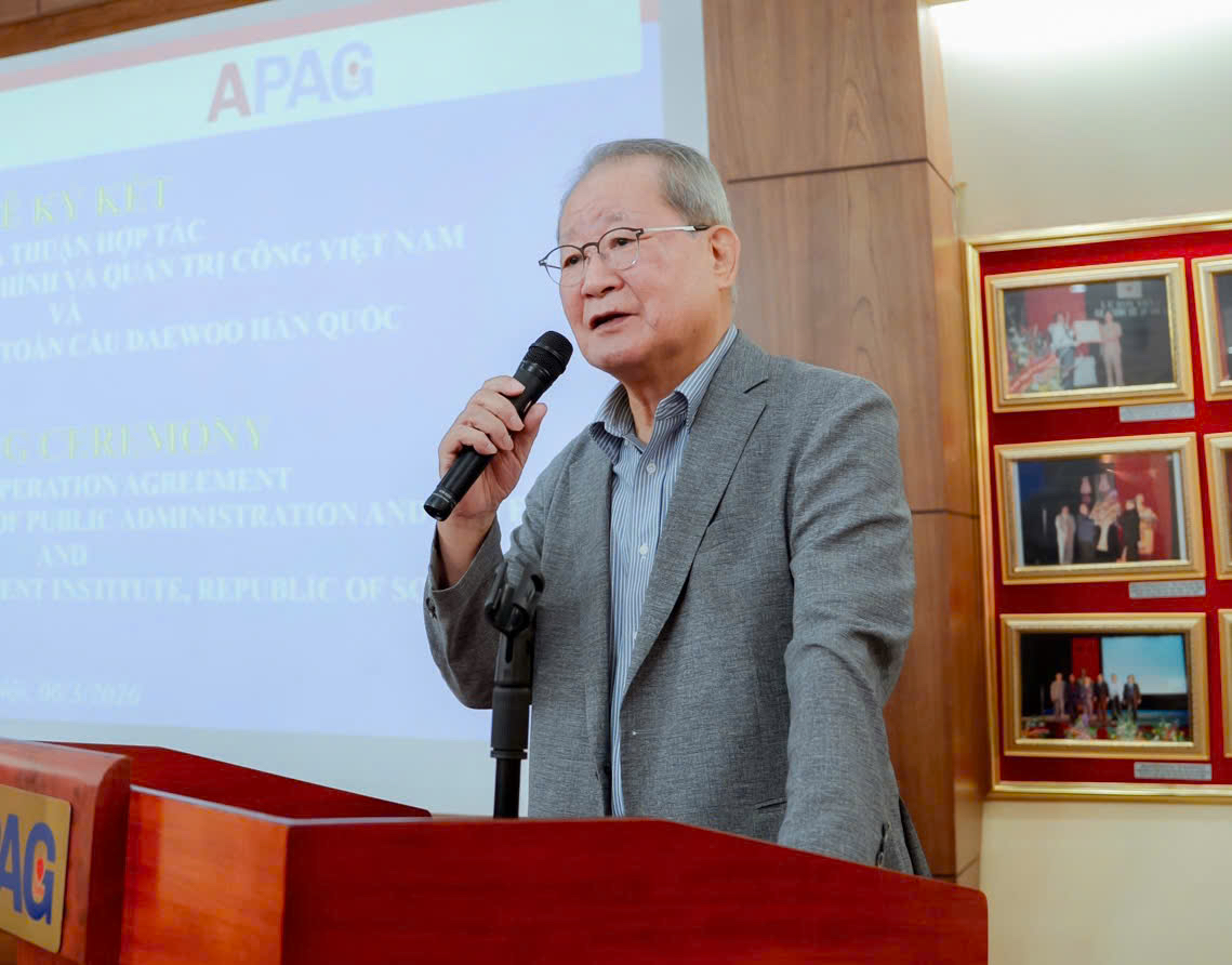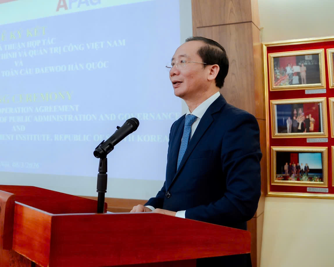(Quanlynhanuoc.vn) – Sáng ngày 06/3/2026, tại Hà Nội đã diễn ra Lễ ký kết Thoả thuận hợp tác giữa Học viện Hành chính và Quản trị công và Học viện Quản lý toàn cầu Daewoo Hàn Quốc về phối hợp đào tạo sinh viên Hàn Quốc tại Việt Nam.