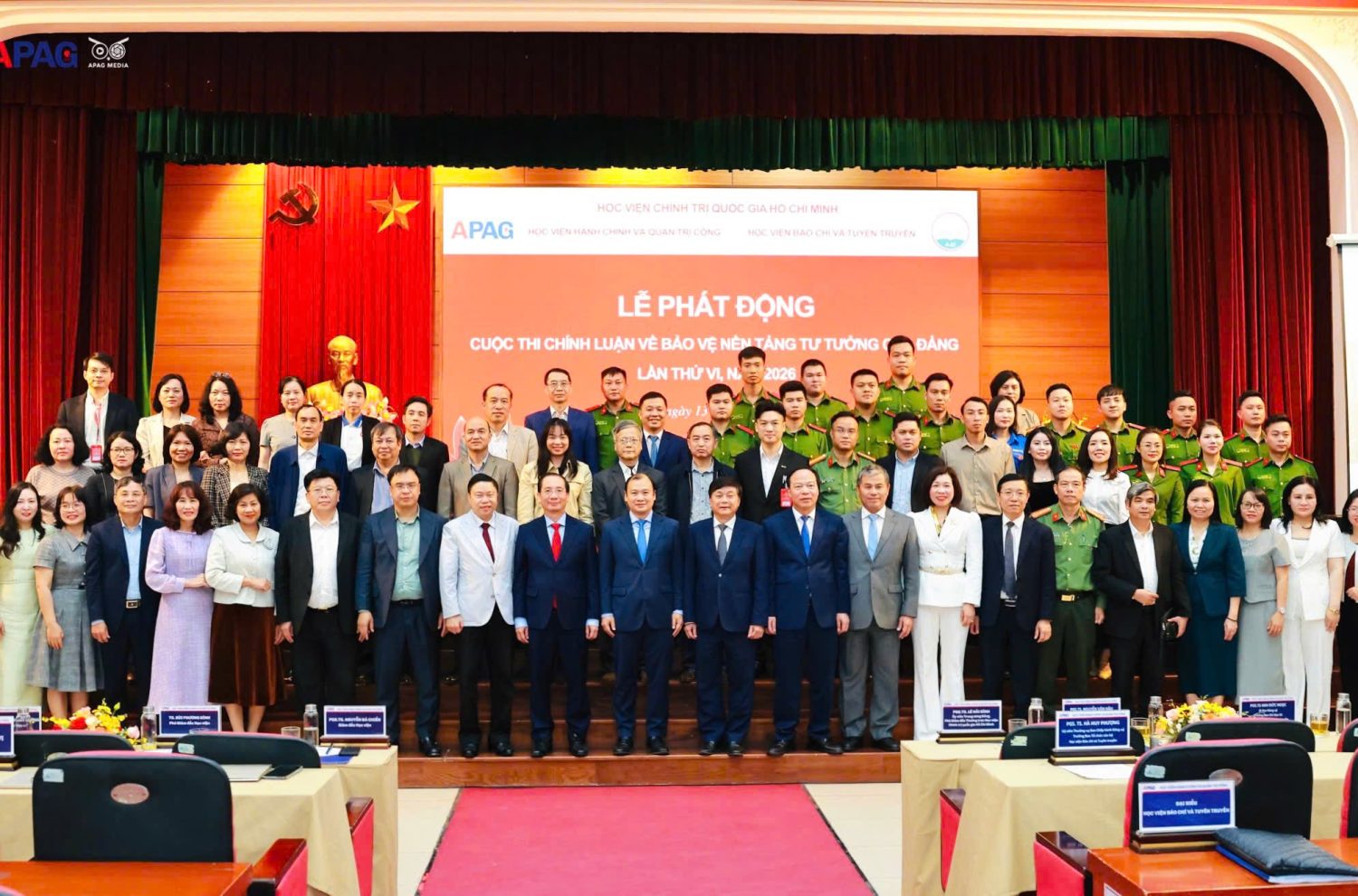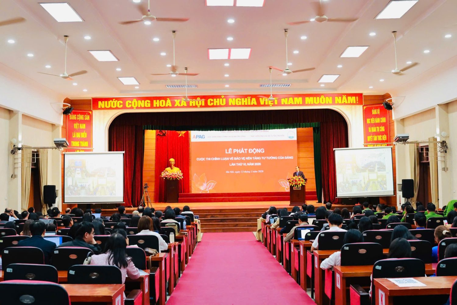 (Quanlynhanuoc.vn) – Chiều ngày 13/3/2026, tại Hà Nội, Học viện Hành chính và Quản trị công phối hợp cùng Học viện Báo chí và Tuyên truyền tổ chức lễ phát động Cuộc thi chính luận về bảo vệ nền tảng tư tưởng của Đảng lần thứ VI, năm 2026. Lễ phát động được tổ chức theo hình thức trực tiếp và trực tuyến đến các Phân hiệu của Học viện Hành chính và Quản trị công.