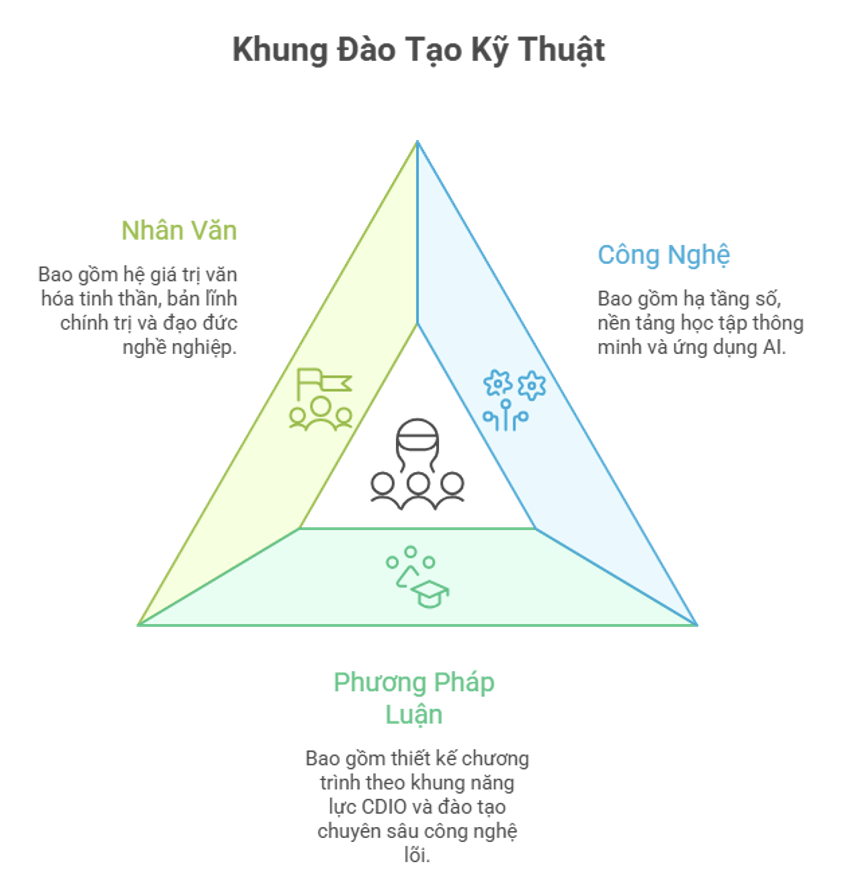 (2) Phương pháp luận (Methodology Dimension): bao gồm thiết kế chương trình theo khung năng lực CDIO, đào tạo chuyên sâu công nghệ lõi và liên kết đào tạo – nghiên cứu – sản xuất.