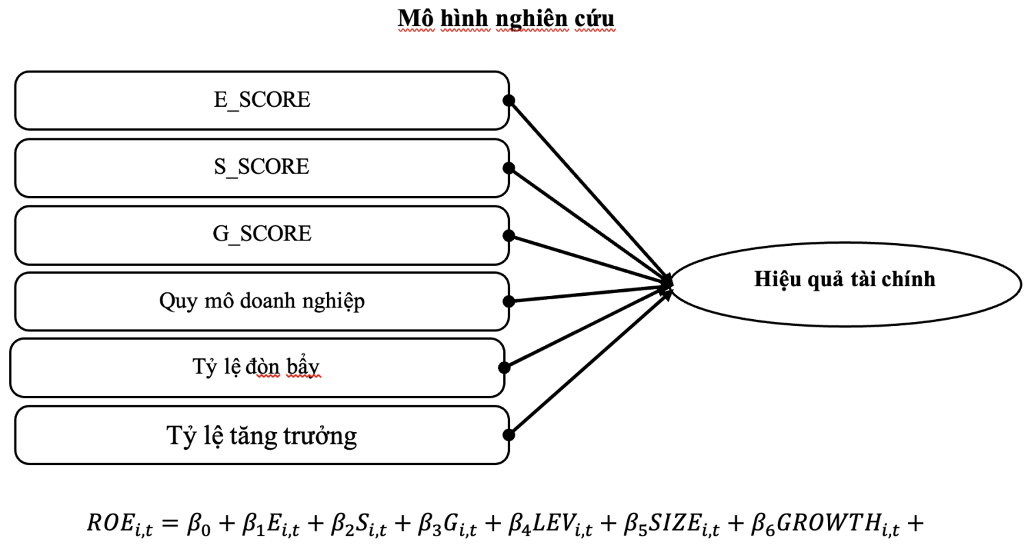 Kế thừa mô hình thực nghiệm từ các nghiên cứu trước đây về tác động của ESG đến hiệu quả tài chính, bài viết để xuất mô hình nghiên cứu có dạng phương trình như sau: