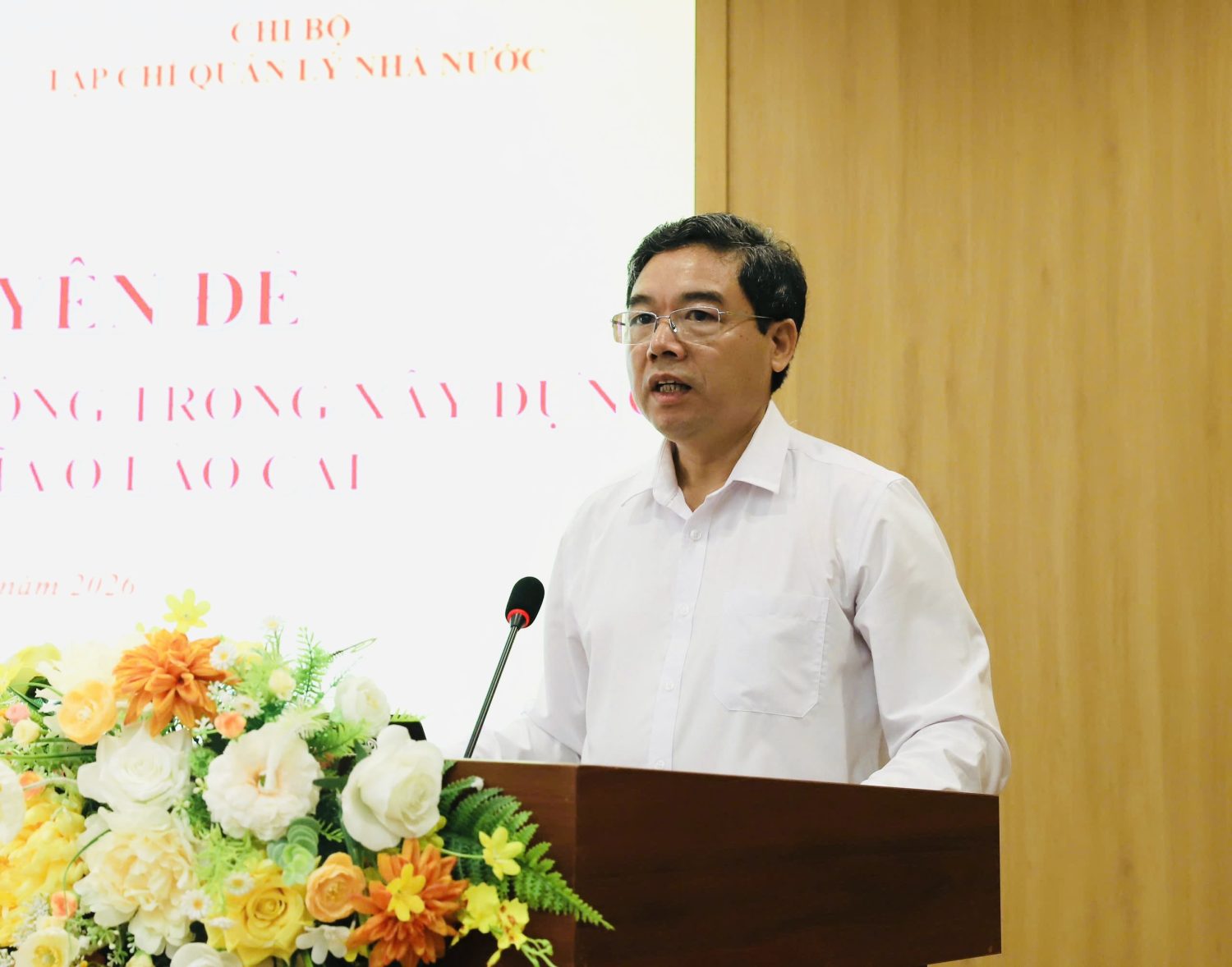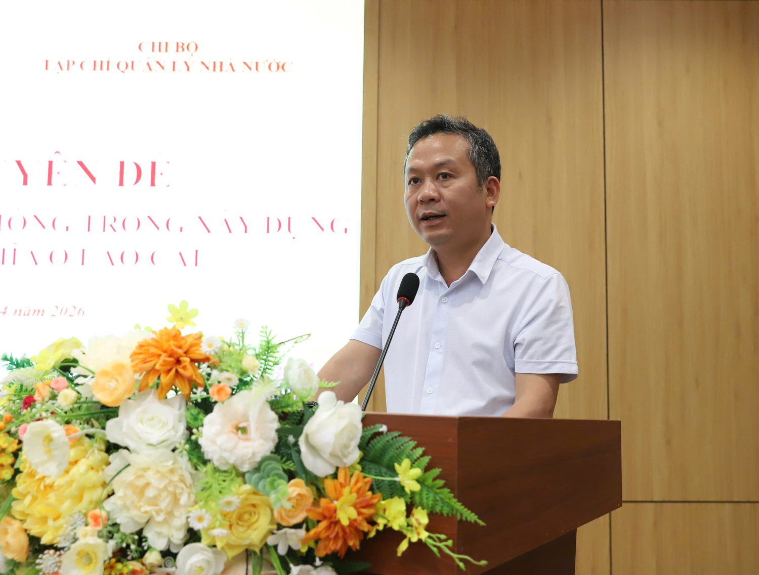 Trình bày báo cáo đề dẫn, đồng chí TS. Nguyễn Quang Vinh, Bí thư Chi bộ Tạp chí Quản lý nhà nước, nhấn mạnh, nâng cao chất lượng sinh hoạt chi bộ luôn được Đảng quan tâm chỉ đạo, trong đó có sinh hoạt chi bộ chuyên đề. Đây là một trong những nhân tố quyết định vai trò lãnh đạo, sức chiến đấu của tổ chức Đảng, nâng cao chất lượng đội ngũ đảng viên, xây dựng chi bộ trong sạch, vững mạnh.