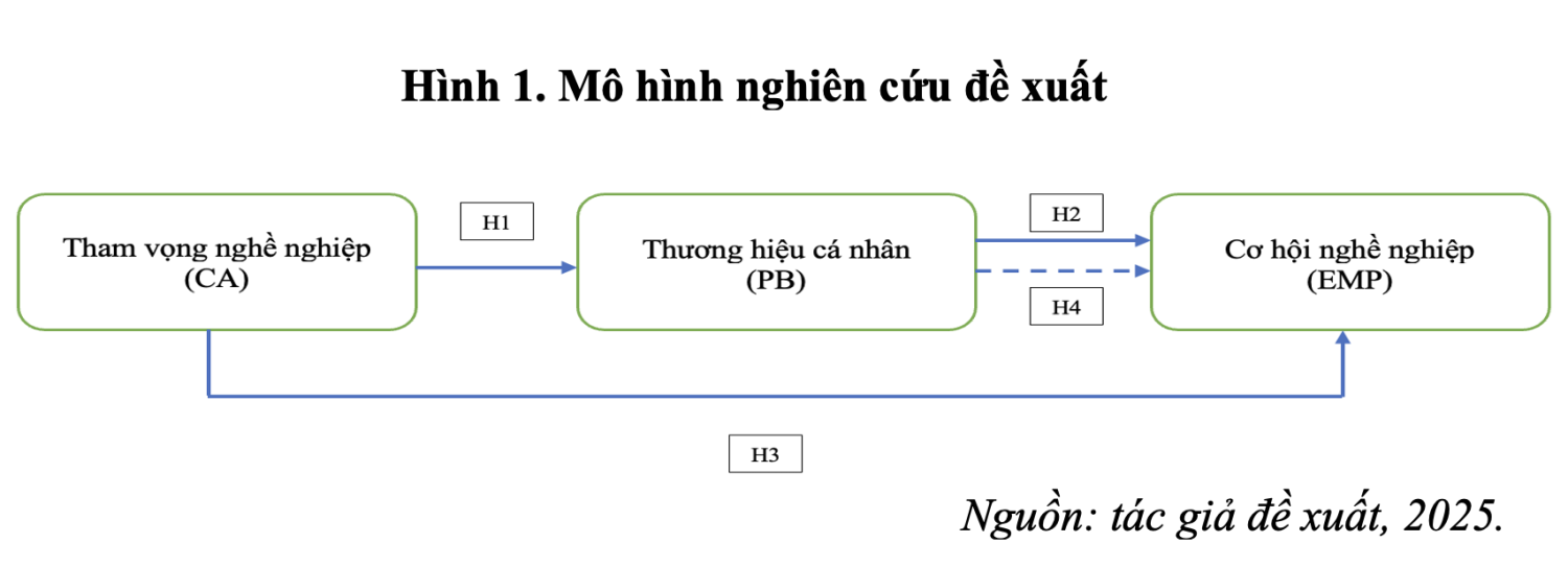 Theo Labrecque và c.s. nhấn mạnh, việc xây dựng thương hiệu cá nhân giúp nâng cao mức độ nhận diện và sự khác biệt hóa, từ đó mở rộng cơ hội nghề nghiệp10. Vì vậy, khi cá nhân có tham vọng nghề nghiệp cao, họ có xu hướng đầu tư vào xây dựng thương hiệu cá nhân như một chiến lược hiện thực hóa mục tiêu, qua đó gia tăng khả năng tiếp cận cơ hội nghề nghiệp (xem Hình 1).