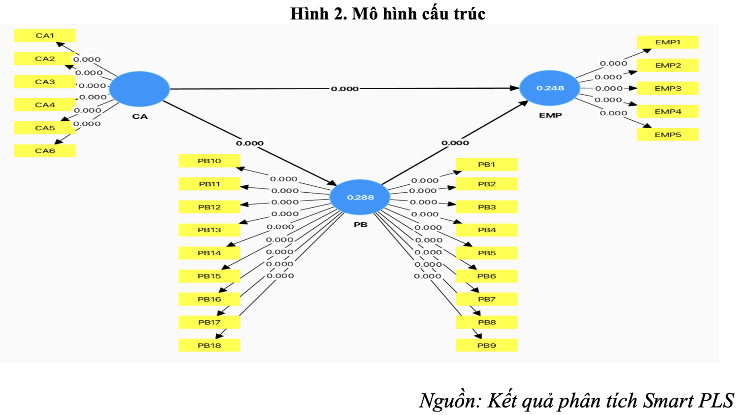 | H2 | PB -> EMP | 0,357 | 0,360 | 0,052 | 6,902 | 0,000 | Chấp nhận giả thuyết |