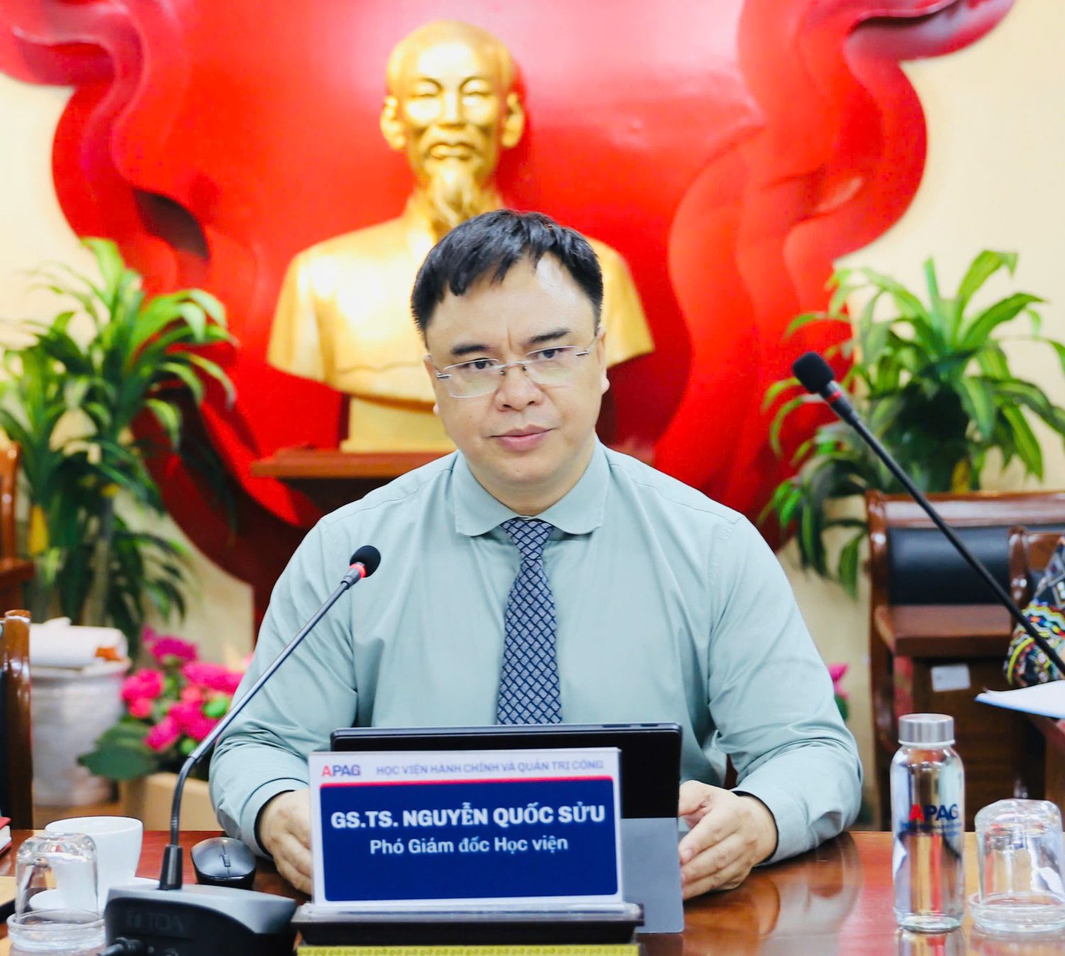 GS.TS. Nguyễn Quốc Sửu đánh giá cao vai trò của EROPA trong việc kết nối, thúc đẩy hợp tác quốc tế, đưa các nền hành chính xích lại gần nhau hơn trong bối cảnh toàn cầu hóa. Ông cho biết, nền hành chính Việt Nam đang có những chuyển đổi mạnh mẽ. Sau hơn 80 năm phát triển, đây có thể coi là giai đoạn đổi mới sâu rộng nhất với khát vọng lan tỏa các giá trị, kinh nghiệm và tư duy quản trị ra khu vực và thế giới. Trong tiến trình đó, Tạp chí Quản lý nhà nước được xác định là một trong những phương tiện quan trọng, đóng vai trò mũi nhọn trong việc kết nối học thuật và hội nhập quốc tế. Dưới sự chỉ đạo của Giám đốc Học viện Chính trị quốc gia Hồ Chí Minh, Học viện Hành chính và Quản trị công đang quyết tâm xây dựng và triển khai đề án phát triển Tạp chí JSM trở thành một tạp chí học thuật uy tín, hướng tới việc được công nhận trong các hệ thống chỉ mục quốc tế, như: Scopus và ISI. Phó Giám đốc Học viện mong nhận được sự chia sẻ kinh nghiệm, sự hỗ trợ quý báu từ GS.TS. Alex Brillantes Jr. và EROPA nhằm góp phần nâng cao chất lượng học thuật và vị thế quốc tế của tạp chí trong thời gian tới.