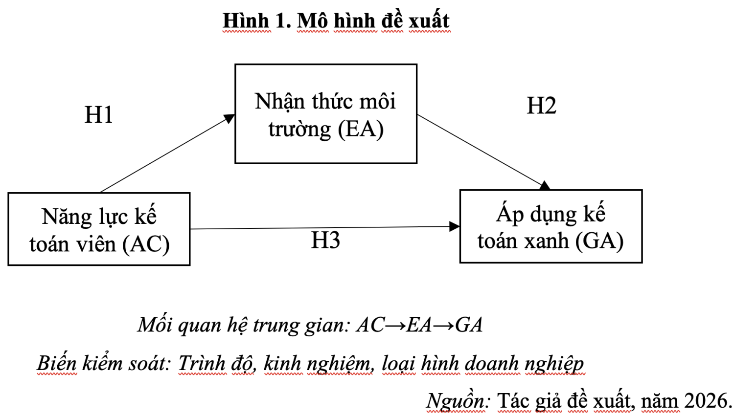 H4: Nhận thức môi trường đóng vai trò trung gian giữa năng lực kế toán viên và việc áp dụng kế toán xanh.
