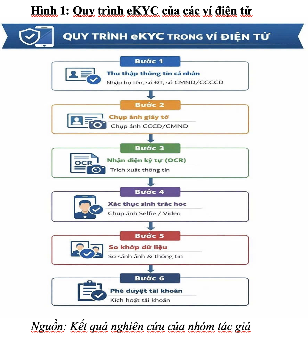 Trong bối cảnh đó, việc phân tích quy trình eKYC trong các ví điện tử tại Việt Nam có ý nghĩa quan trọng nhằm đánh giá thực trạng, công nghệ ứng dụng và định hướng phát triển. Kết quả nghiên cứu1 không chỉ góp phần hoàn thiện lý luận về eKYC trong Fintech mà còn cung cấp cơ sở thực tiễn cho doanh nghiệp và các cơ sở đào tạo trong việc ứng dụng và giảng dạy các nội dung liên quan đến công nghệ tài chính.
