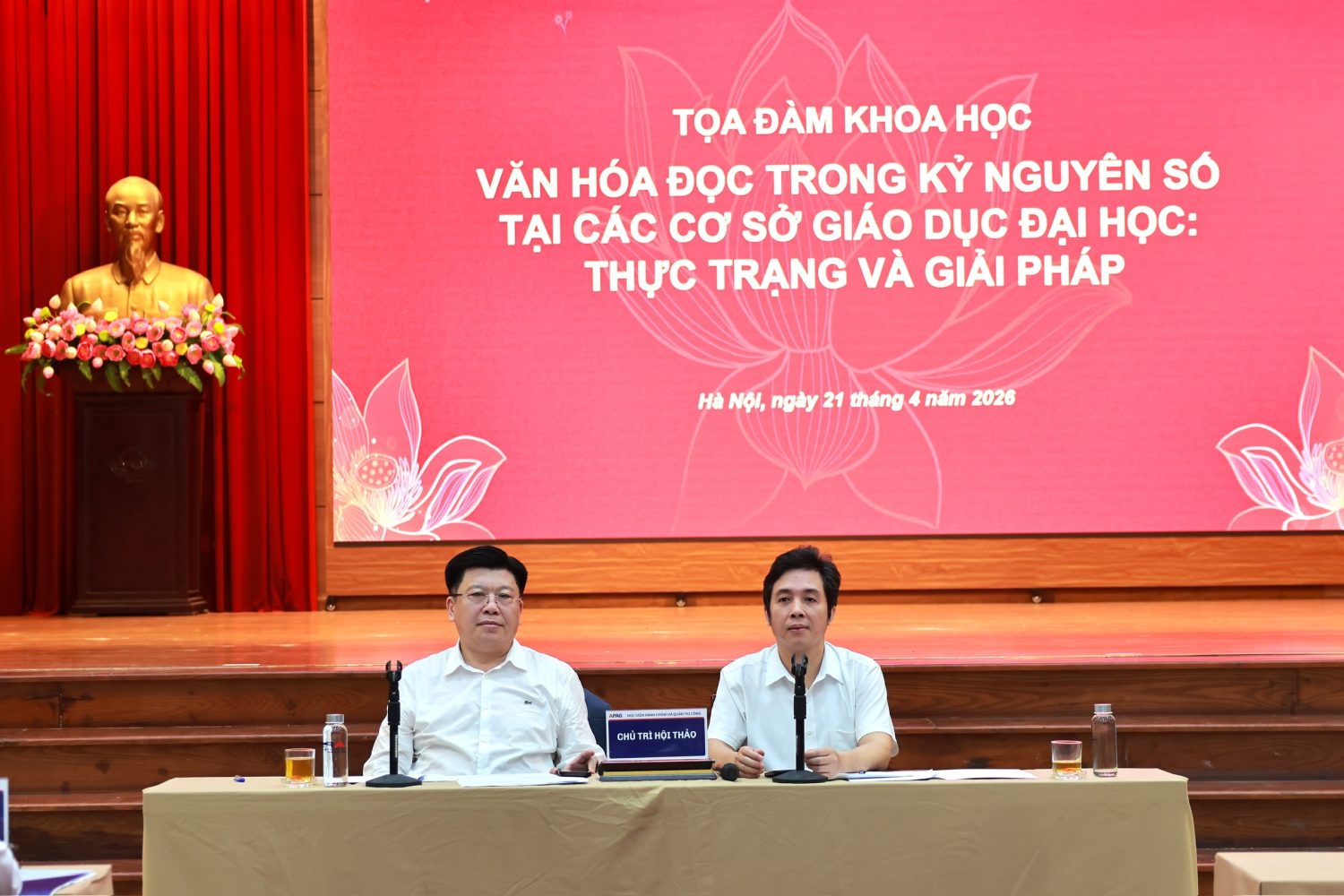 (Quanlynhanuoc.vn) – Sáng ngày 21/4/2026, Học viện Hành chính và Quản trị công tổ chức Tọa đàm khoa học “Văn hóa đọc trong kỷ nguyên số tại các cơ sở giáo dục đại học: thực trạng và giải pháp”. Tọa đàm được tổ chức theo hình thức trực tiếp kết hợp trực tuyến đến các Phân hiệu của Học viện. TS. Hoàng Ngọc Hải, Phó Giám đốc Học viện và TS. Phạm Quang Quyền, Giám đốc Trung tâm Thông tin – Thư viện đồng chủ trì Toạ đàm Khoa học.