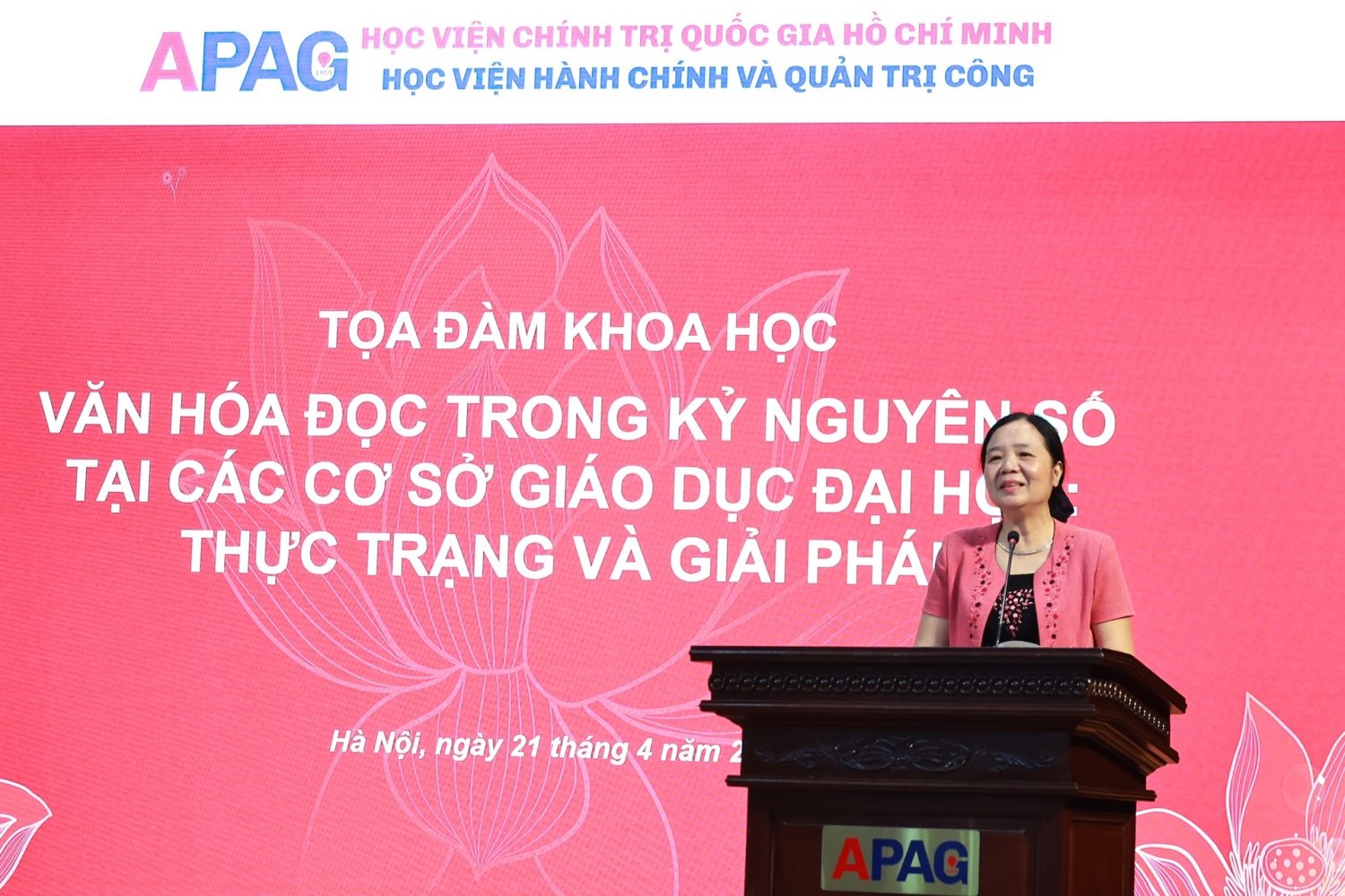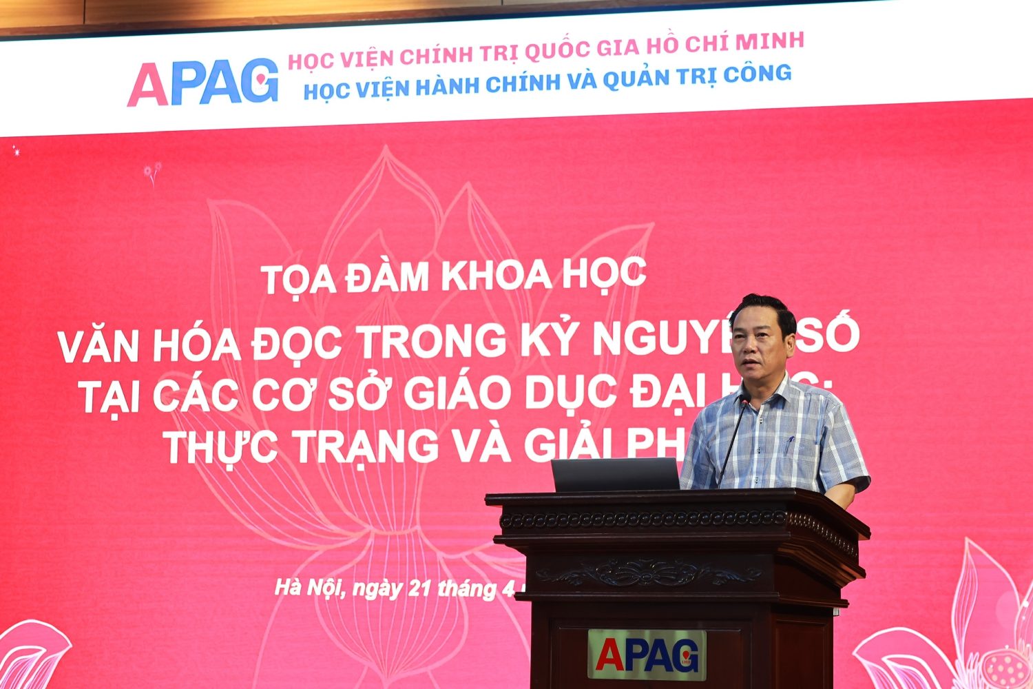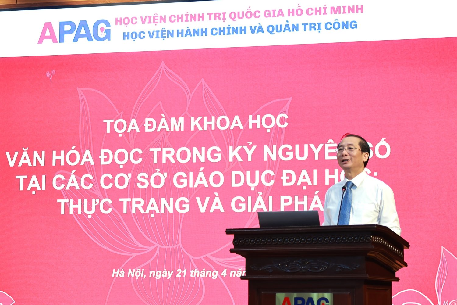 Ông kỳ vọng, Tọa đàm sẽ làm rõ thực trạng, nhận diện đầy đủ tác động của công nghệ và đề xuất giải pháp khả thi để phát triển văn hóa đọc trong môi trường số. Đồng thời, định hướng Học viện xây dựng văn hóa đọc trở thành yêu cầu thực chất trong đào tạo; phát triển thư viện số hiện đại; đổi mới phương pháp giảng dạy; bảo đảm chuẩn mực học thuật; phát huy vai trò nêu gương của giảng viên và lan tỏa phong trào đọc sách, qua đó, nâng cao chất lượng nguồn nhân lực và xây dựng môi trường học thuật bền vững.